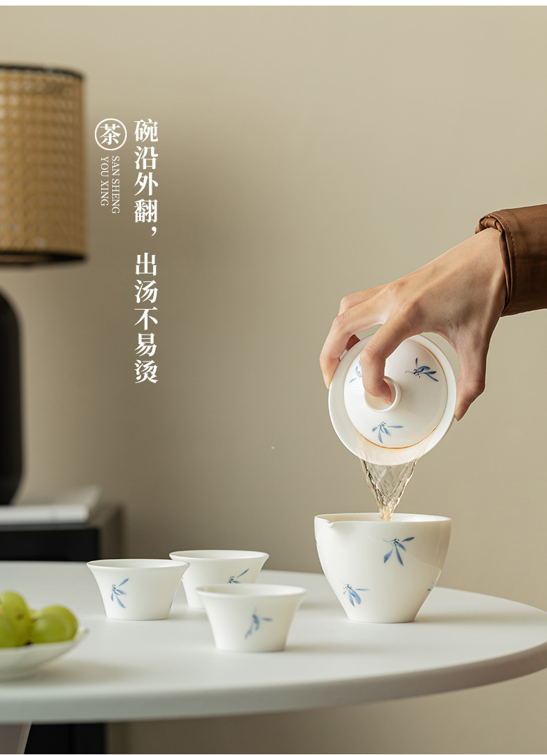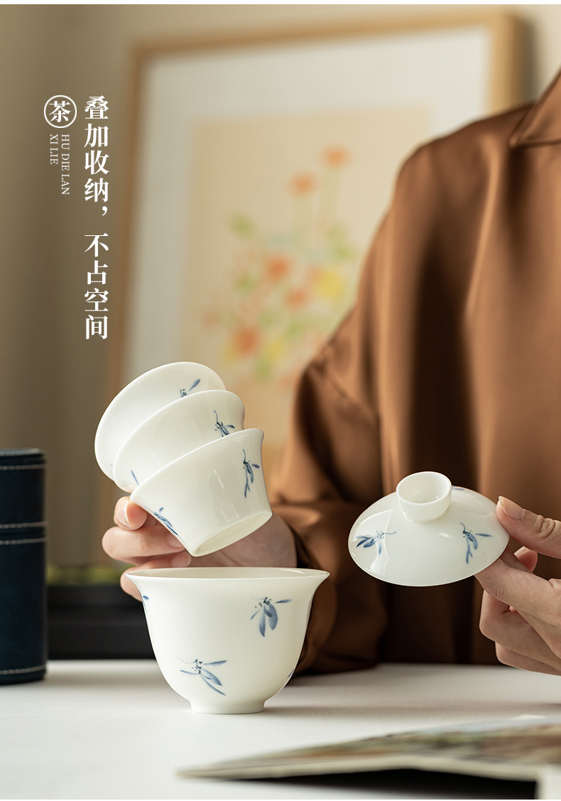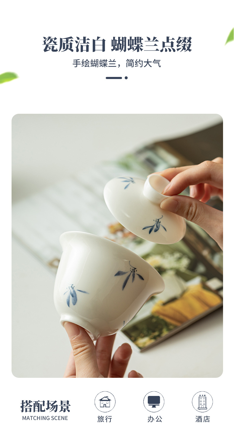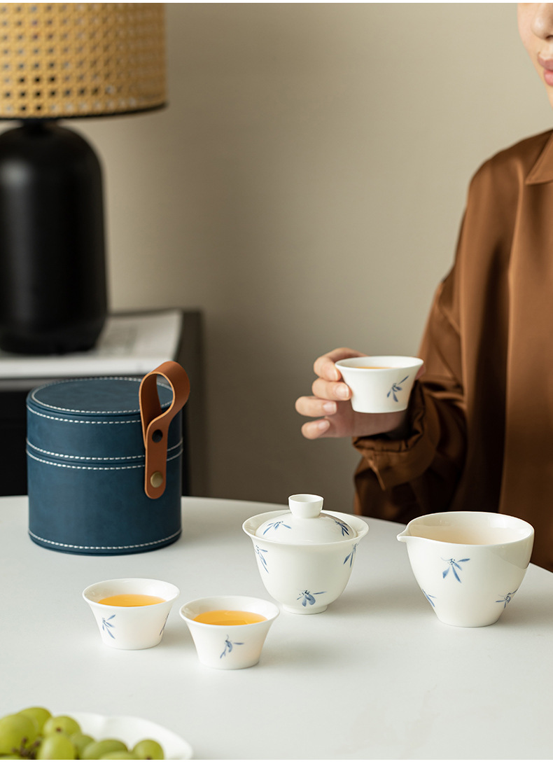 Phalaenopsis vẽ tay cốc khách nhanh một ấm bốn cốc bộ đồ trà du lịch gốm sứ cắm trại ngoài trời trên ô tô