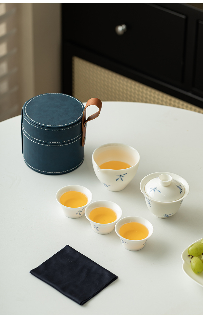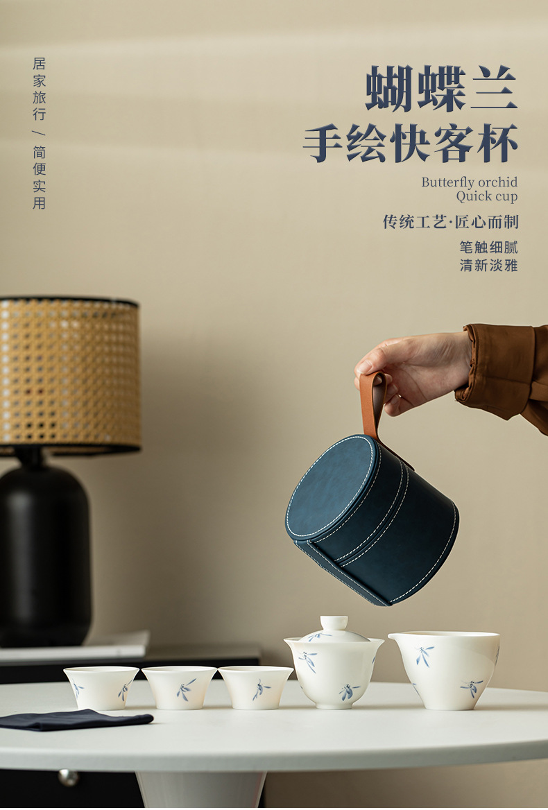 - Phalaenopsis vẽ tay cốc khách nhanh một ấm bốn cốc bộ đồ trà du lịch gốm sứ cắm trại ngoài trời trên ô tô