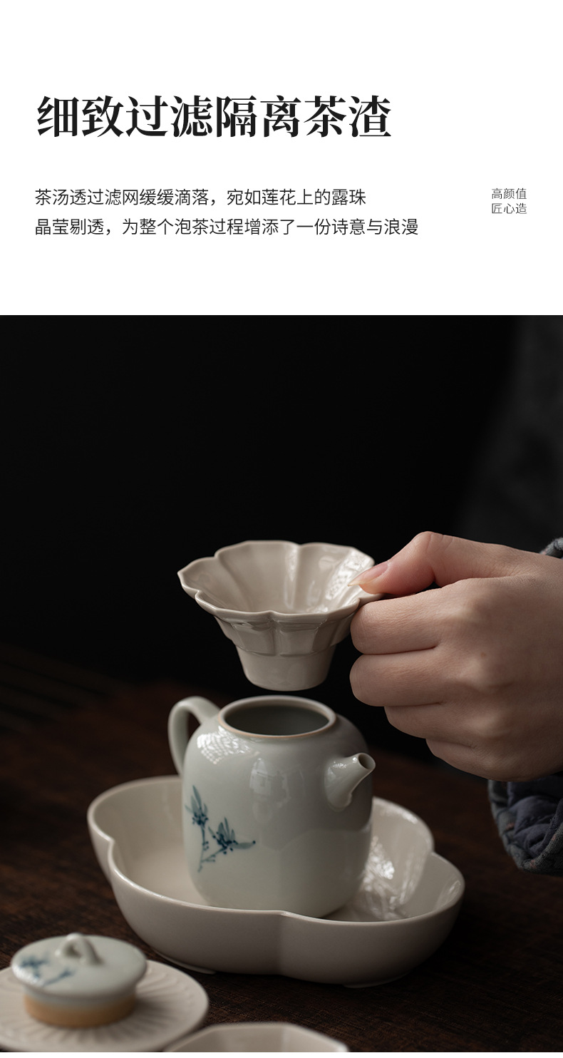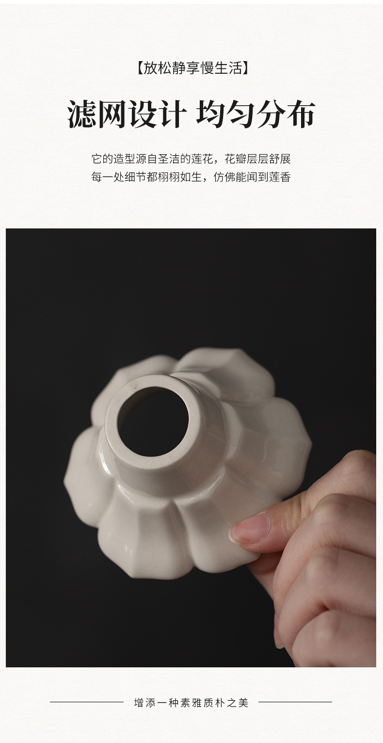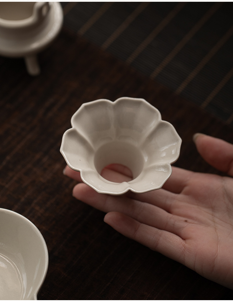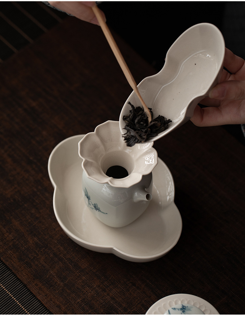 - Phễu trà cánh hoa màu xám thực vật Dụng cụ pha trà gốm sứ cao cấp Phụ kiện trà đạo Kung Fu Dụng cụ pha trà