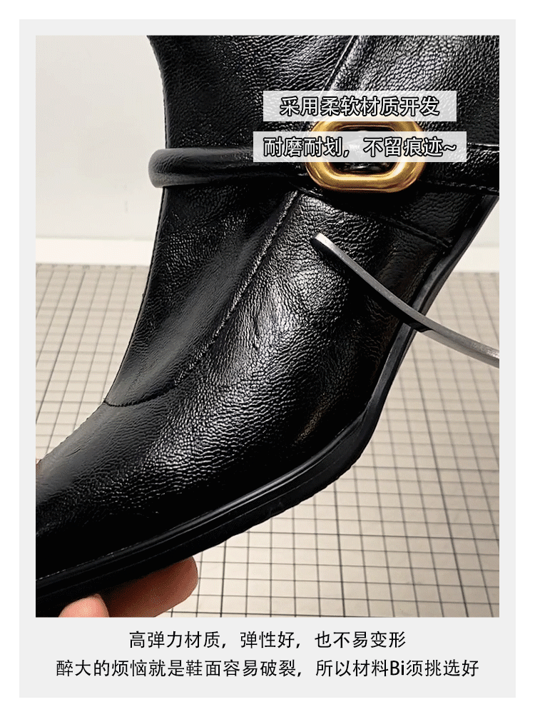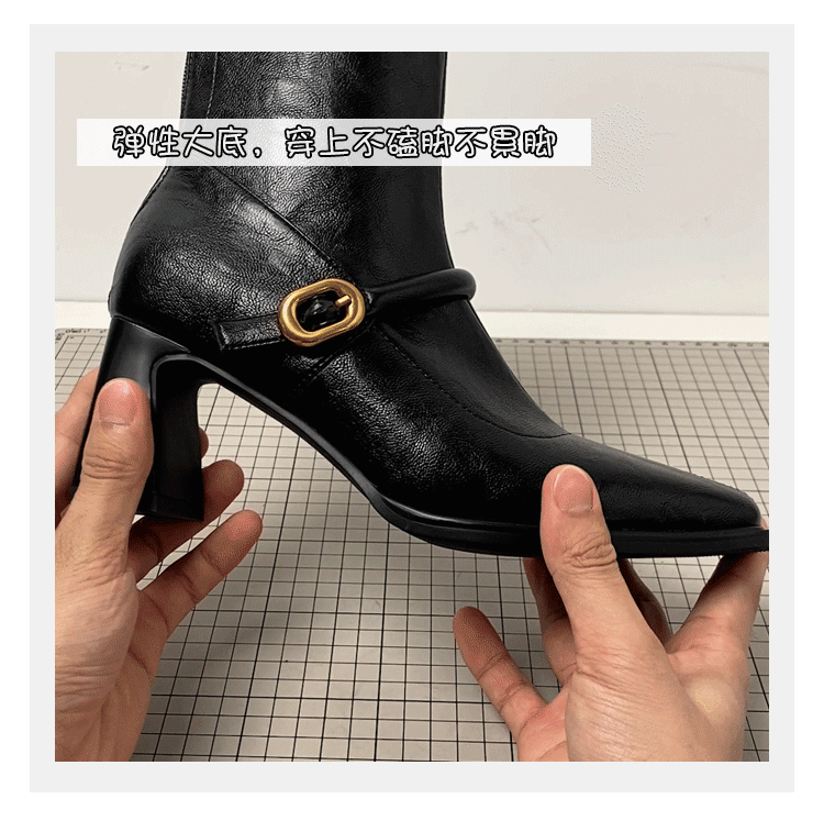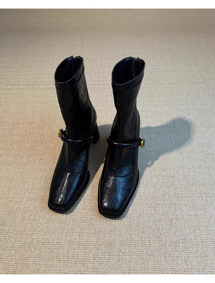 - Phiên bản da bò ~ Giày bốt cao gót mũi vuông dành cho nữ, gót vuông kiểu Pháp, khóa kéo phía sau kiểu cổ điển, bốt ngắn bằng da thật, bốt thời trang co giãn.