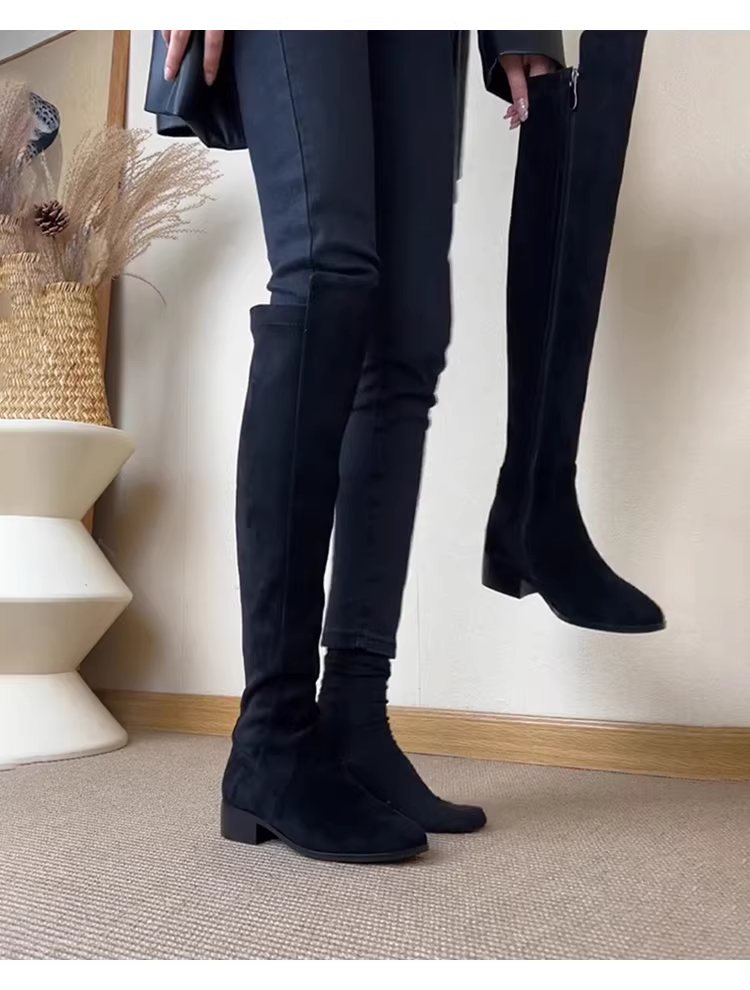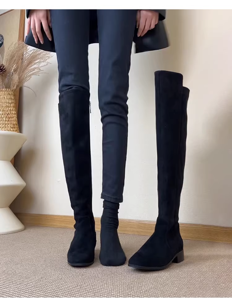 - Phiên bản da bò ~ Giày bốt cưỡi ngựa cao quá đầu gối có khóa kéo bên hông dành cho nữ, bốt dài màu đen, tôn dáng, da mờ, bốt đa năng và thời trang.