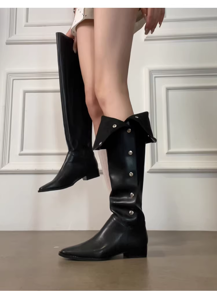 - Phiên bản da bò ~ Giày bốt cưỡi ngựa cao quá đầu gối có khóa thon gọn bằng da thật màu đen cổ điển dành cho nữ, giày cao cổ thời trang hai kiểu dáng