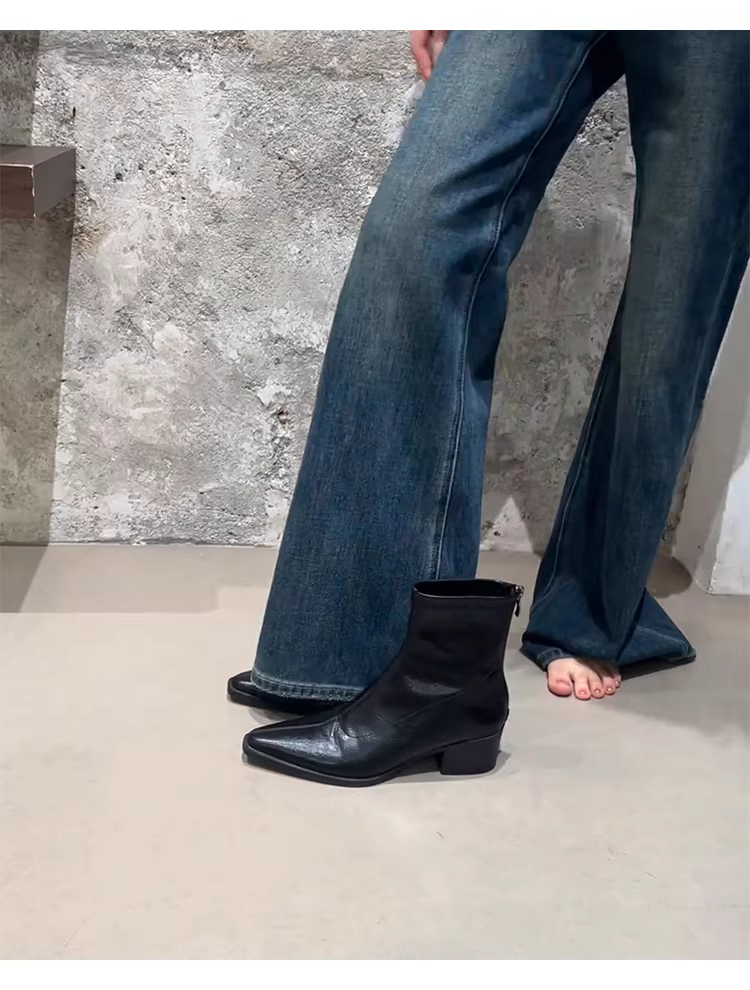 - Phiên bản da bò ~ Giày bốt đế dày đa năng, thời trang, kiểu dáng thanh lịch dành cho nữ, kiểu dáng cổ điển đơn giản, khóa kéo phía sau, giúp thon gọn, giày bốt ngắn thời trang