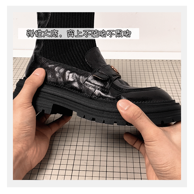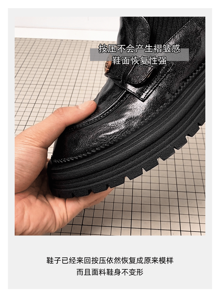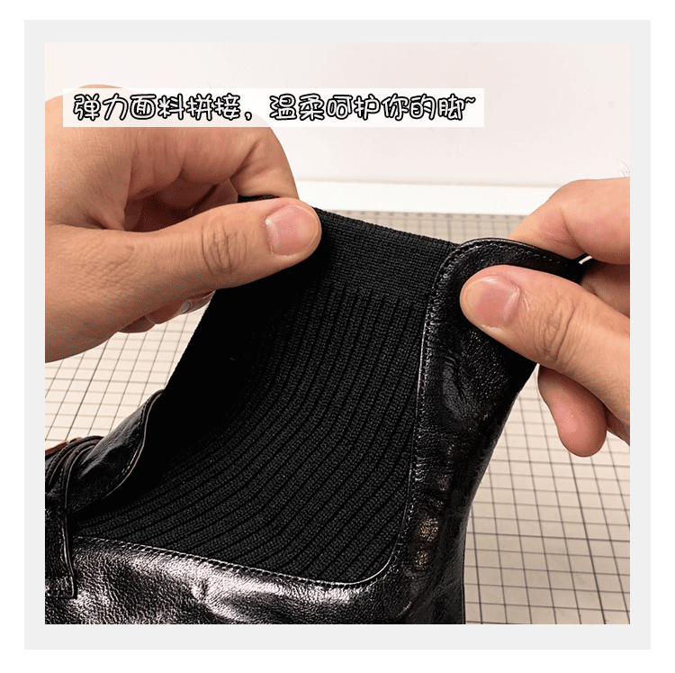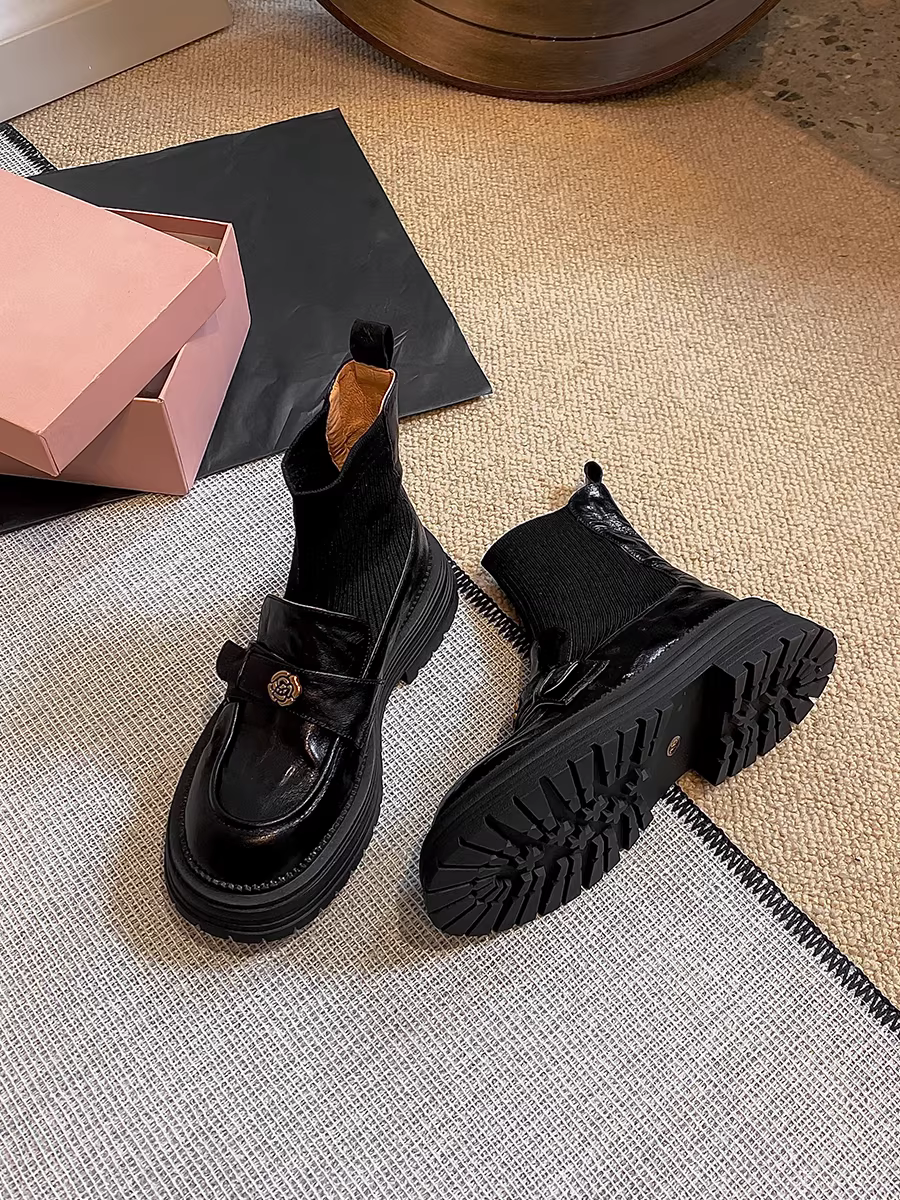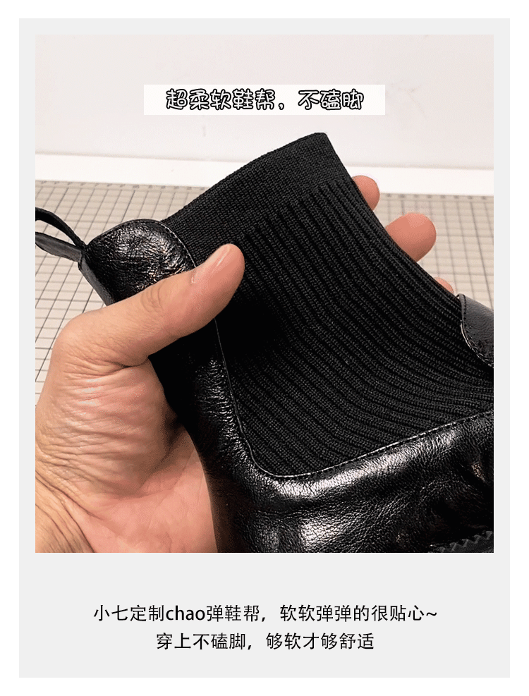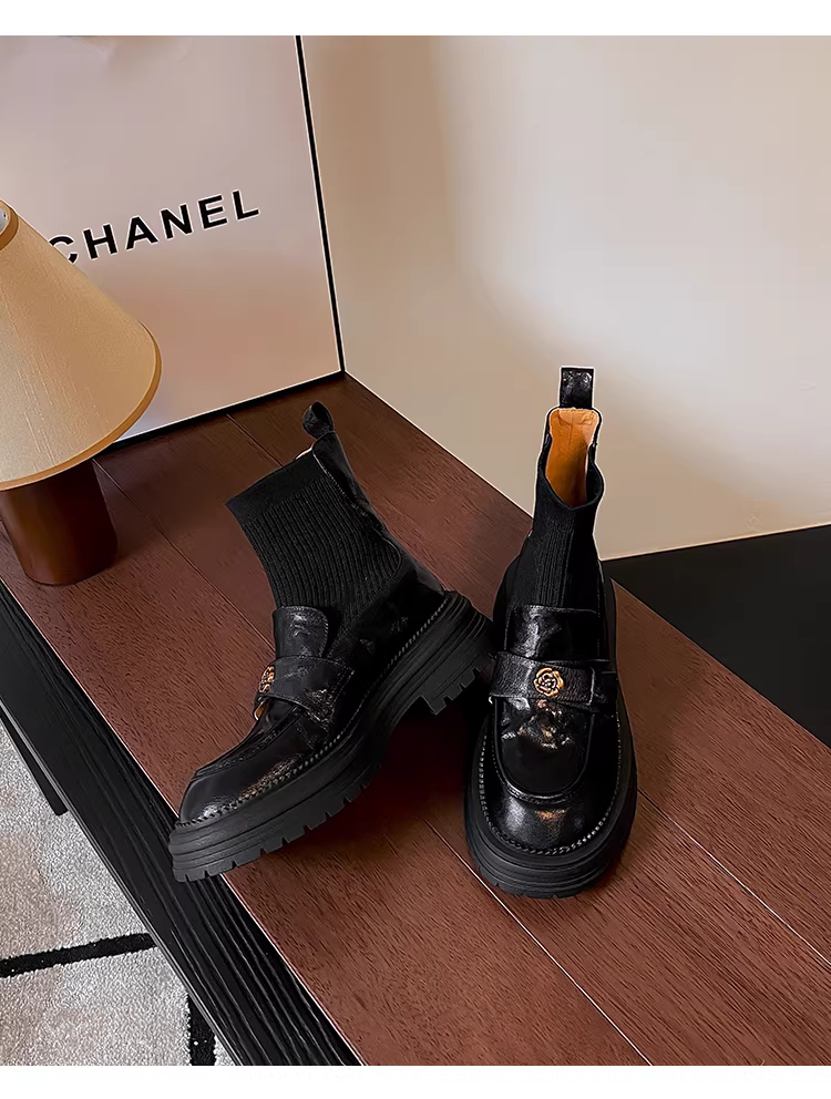 - Phiên bản da bò ~ Giày bốt dệt kim da thật kiểu Chanel dành cho nữ, bốt ôm sát, bốt cổ ngắn kiểu Anh đế dày cổ điển