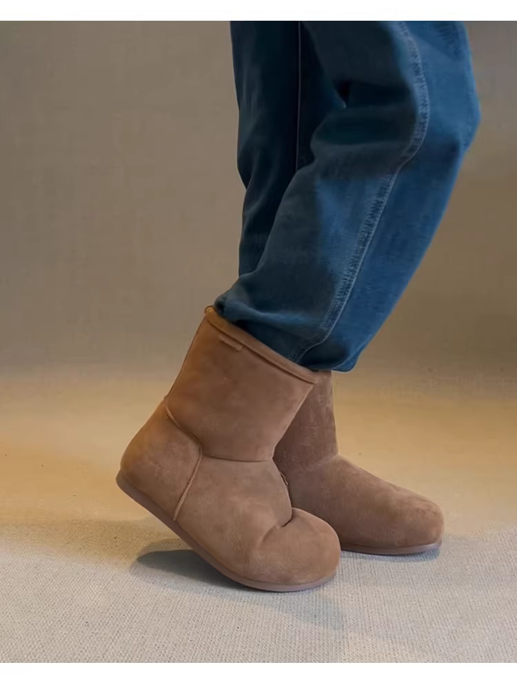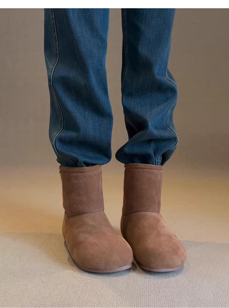 - Phiên bản da bò ~ Giày bốt đi tuyết cổ điển bằng da thật mũi rộng dễ thương và độc đáo dành cho nữ, kiểu lười, đế bằng, lót lông cừu và bông dày.