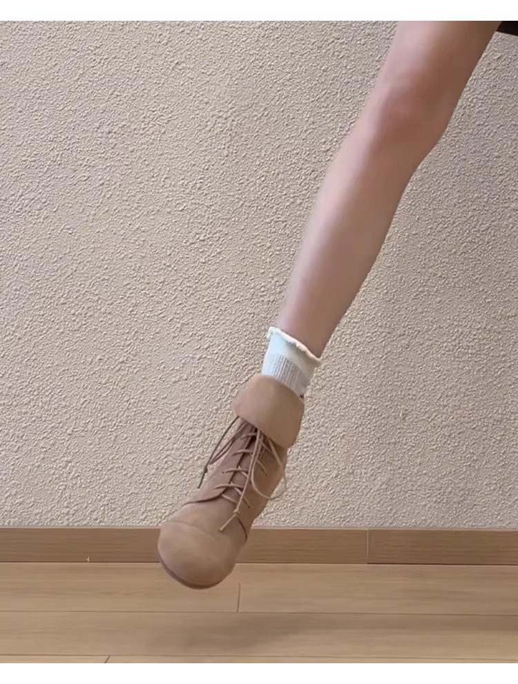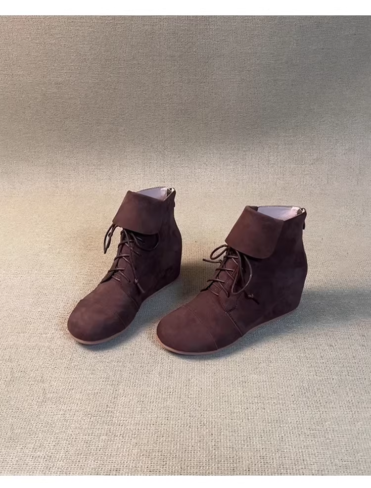 - Phiên bản da bò ~ Giày bốt Martin da lộn dành cho nữ, phong cách cổ điển với khóa kéo phía sau có thể gấp lại, buộc dây, giày bốt ngắn tăng chiều cao dành cho phụ nữ nhỏ nhắn, hợp thời trang.