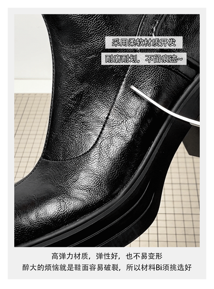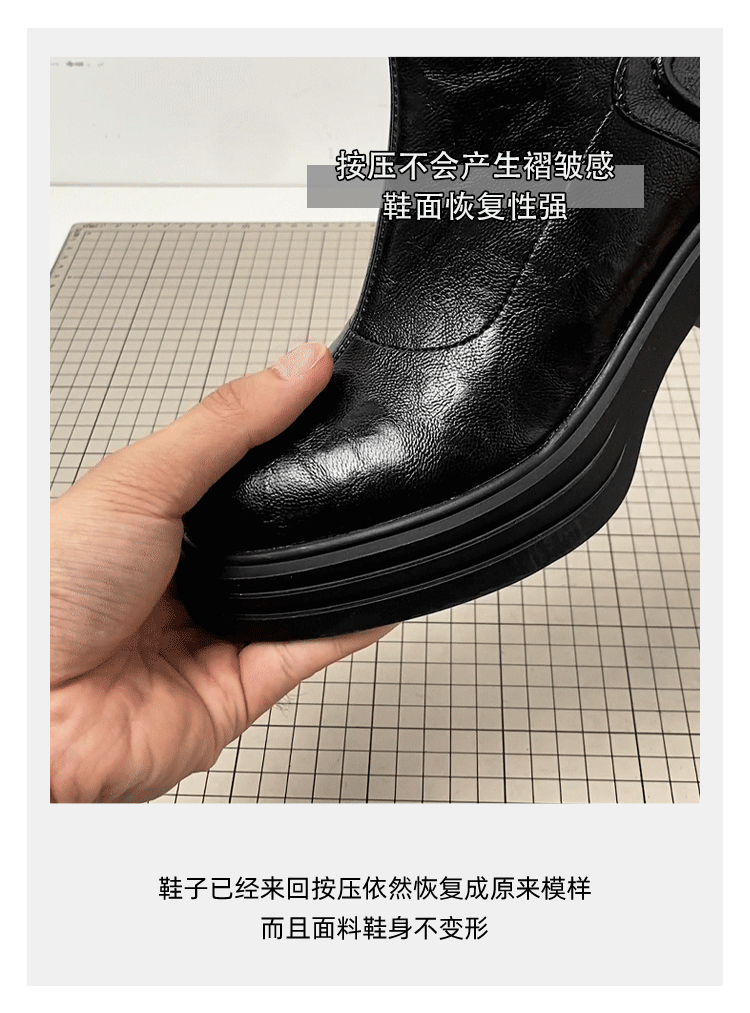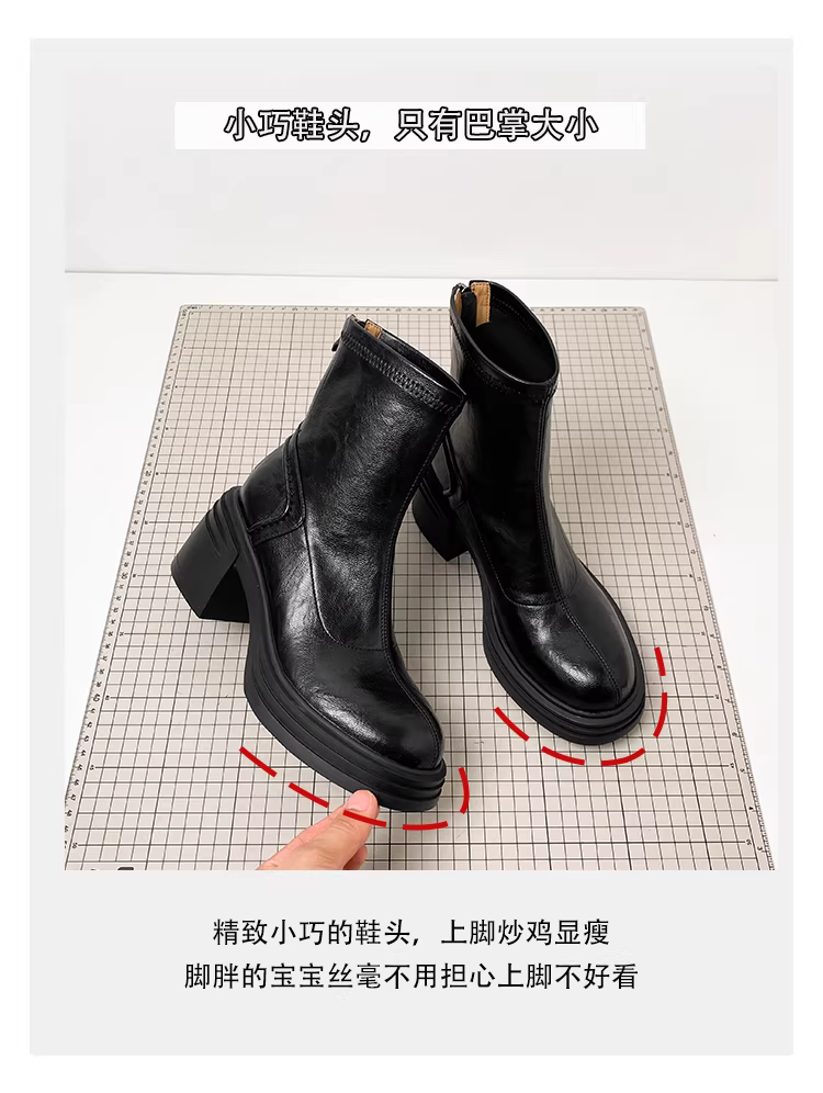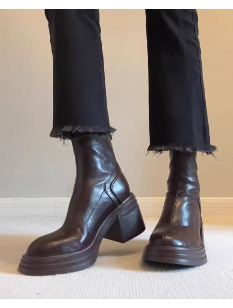 - Phiên bản da bò ~ Giày bốt Martin đế dày tăng chiều cao bằng da thật màu nâu cổ điển dành cho nữ, khóa kéo phía sau đơn giản, gót dày, bốt kiểu dáng cổ điển