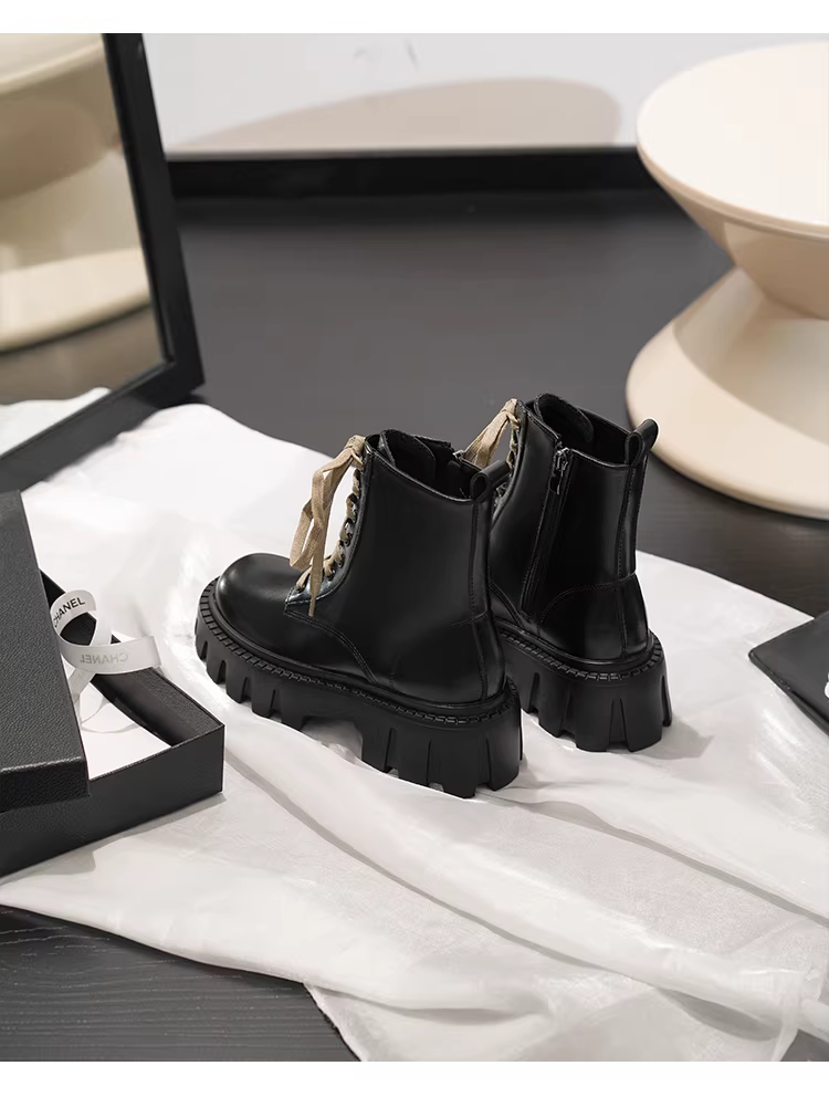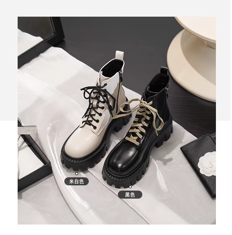 - Phiên bản da bò~ Giày bốt Martin kiểu Anh dành cho nữ 2025, da thật, đế platform dày, tăng chiều cao, buộc dây, kiểu ngắn dành cho người nhỏ nhắn