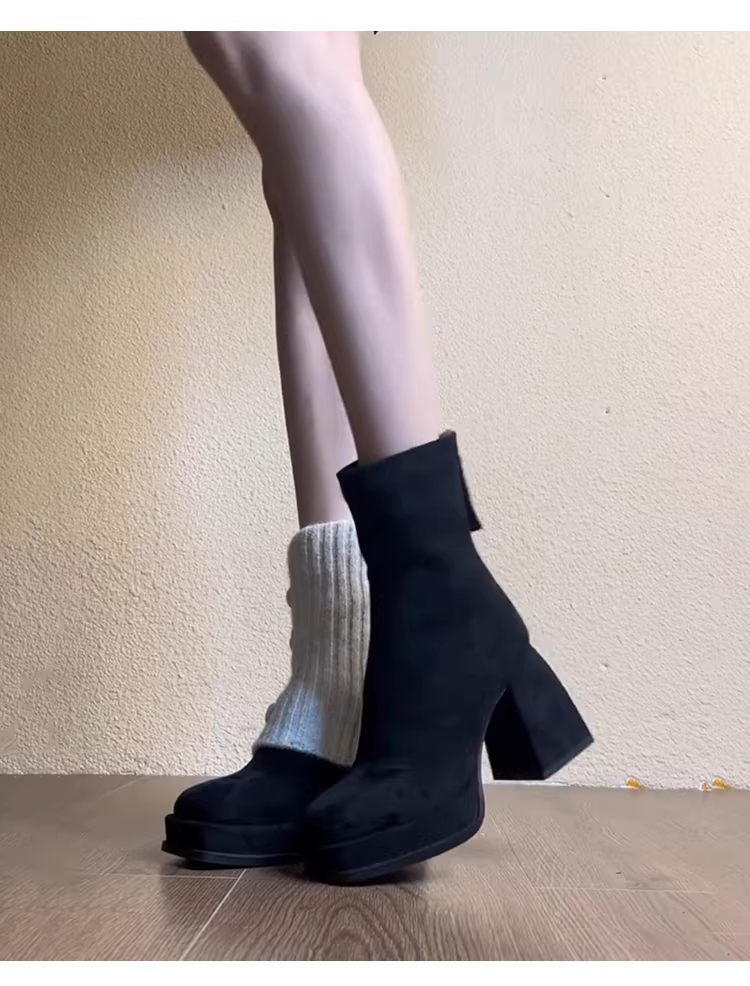 - Phiên bản da bò ~ Giày bốt ngắn mũi vuông thời trang và đa năng, tăng chiều cao, giúp thon gọn dáng người dành cho nữ, giày bốt ngắn có khóa kéo phía sau giúp tăng chiều cao, dành cho người nhỏ nhắn.