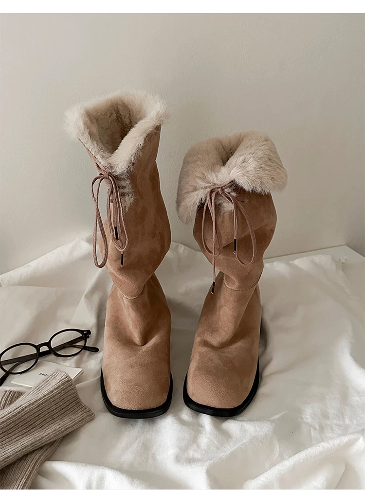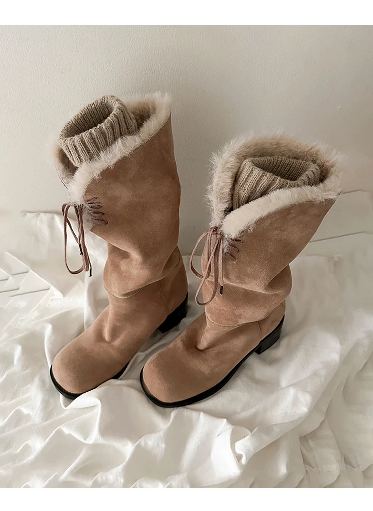 - Phiên bản da bò ~ Giày bốt thời trang dài có thể gập lại, có thể mang được hai kiểu, cao cấp dành cho nữ, giày bốt giữ ấm đi tuyết, giày bốt lông thú độc đáo
