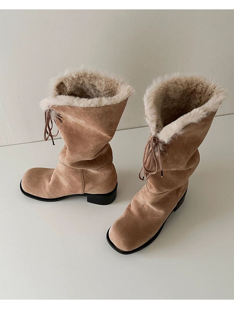 Phiên bản da bò ~ Giày bốt thời trang dài có thể gập lại, có thể mang được hai kiểu, cao cấp dành cho nữ, giày bốt giữ ấm đi tuyết, giày bốt lông thú độc đáo