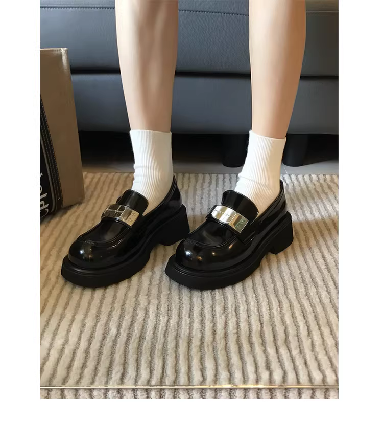 Phiên bản da bò! Giày da đế dày kiểu Anh dành cho nữ, giày đơn kiểu đồng phục JK có khóa kim loại, giày lười da thật đế platform.