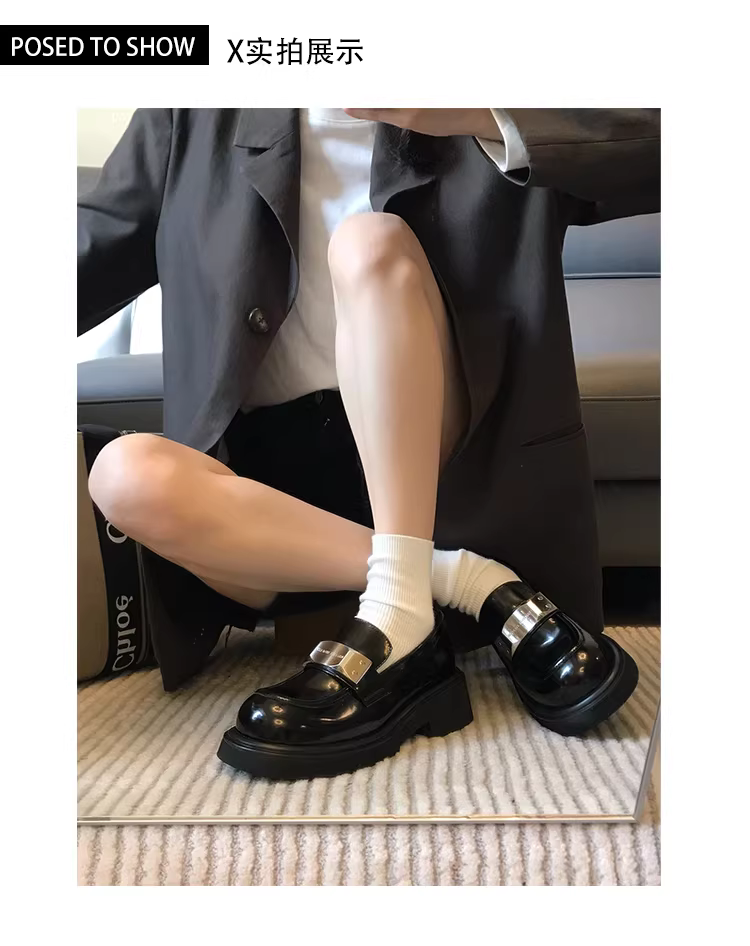 - Phiên bản da bò! Giày da đế dày kiểu Anh dành cho nữ, giày đơn kiểu đồng phục JK có khóa kim loại, giày lười da thật đế platform.