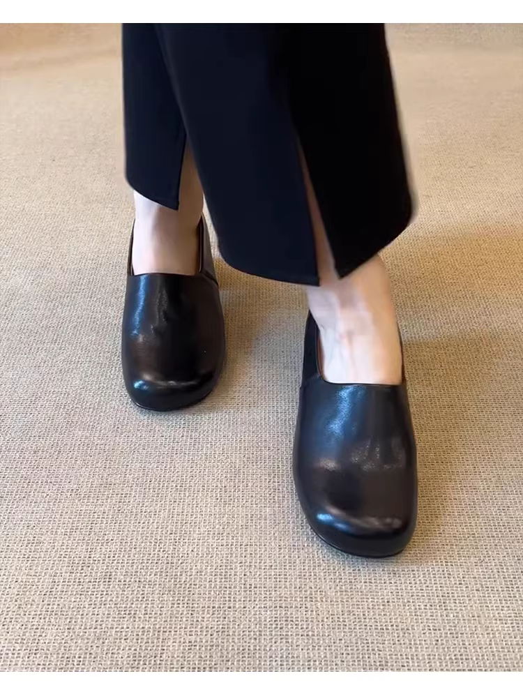 - Phiên bản da bò~giày lười đi làm bằng da thật kiểu dáng đơn giản dành cho nữ, thời trang, giản dị, đa năng, thoải mái, giày đơn gót dày