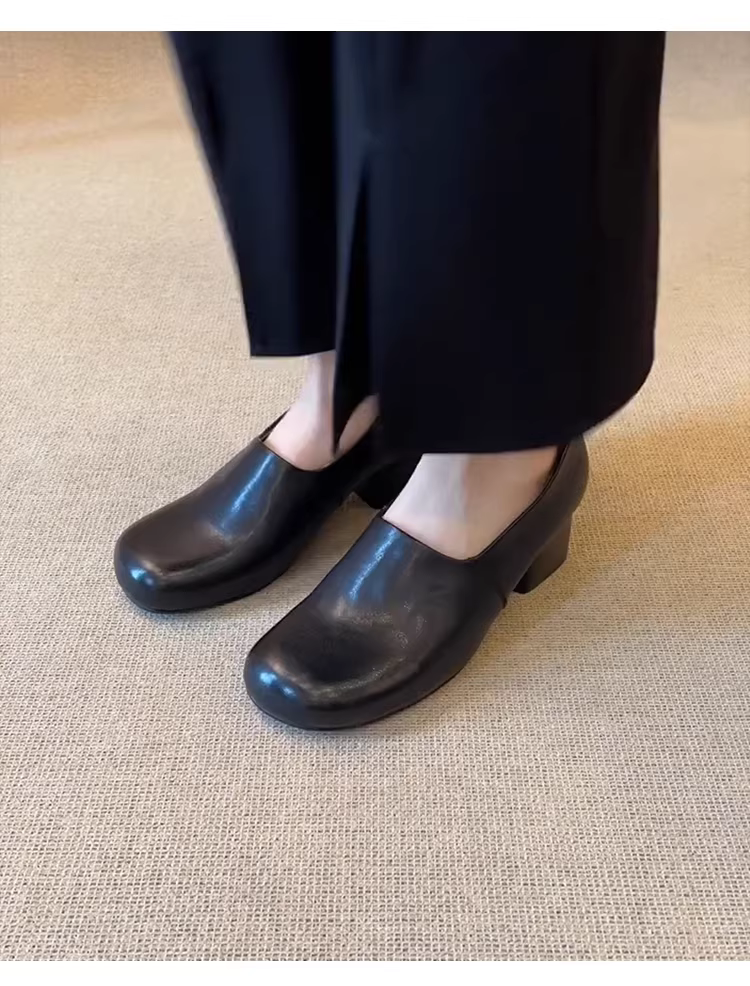 Phiên bản da bò~giày lười đi làm bằng da thật kiểu dáng đơn giản dành cho nữ, thời trang, giản dị, đa năng, thoải mái, giày đơn gót dày