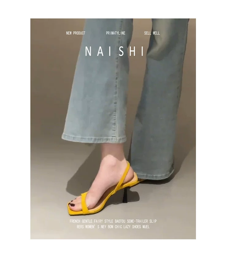 - Phiên bản da cừu! Dép quai ngang mũi vuông dành cho nữ, phong cách Pháp mùa hè, phối cùng váy, giày cao gót, giày cao gót đen không gót.