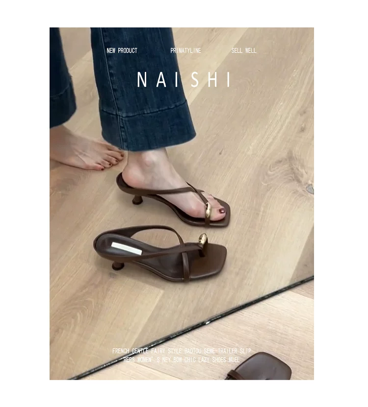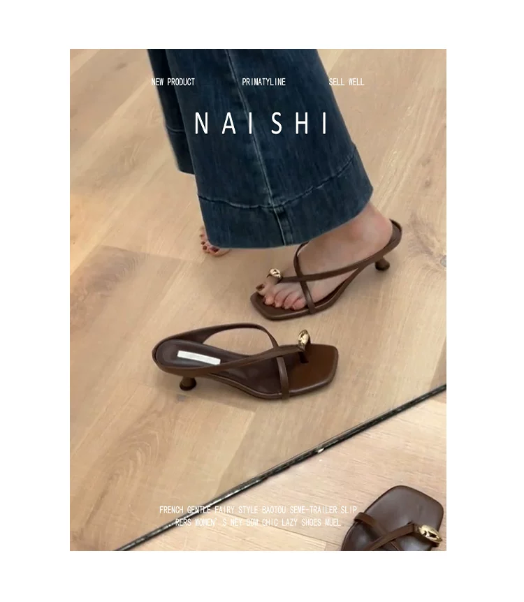 - Phiên bản da cừu! Dép quai ngang mũi vuông dành cho nữ, quai chéo có khóa kim loại, dép cao gót.