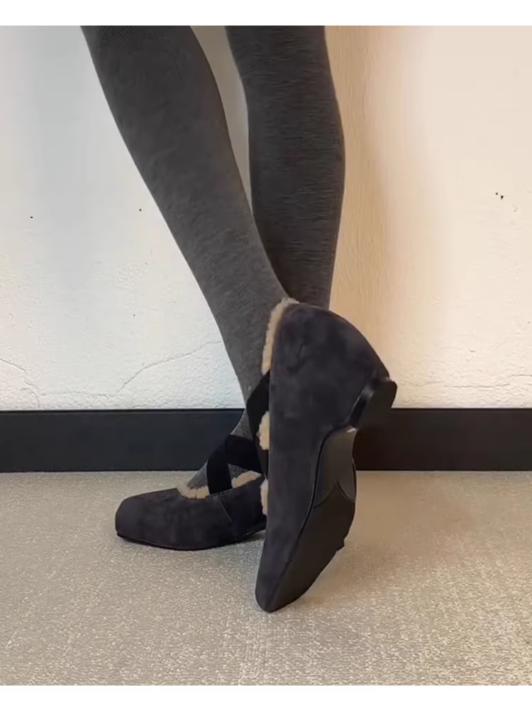 - Phiên bản da cừu ~ Giày ba lê cao cấp đa năng có dây đeo chéo kiểu Pháp dành cho nữ với độ tăng chiều cao ẩn, lớp lót lông cừu giữ ấm, giày Mary Jane thời trang.