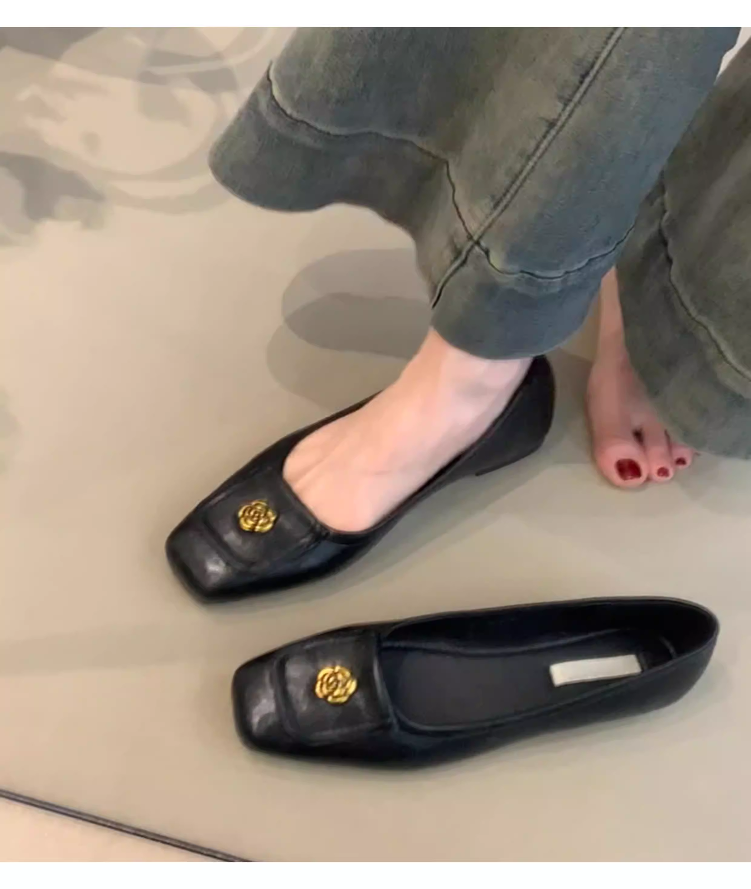 - Phiên bản da cừu~ Giày bệt kiểu dáng cổ điển dành cho nữ, mũi vuông, phong cách retro, da thật, giày bệt đa năng.