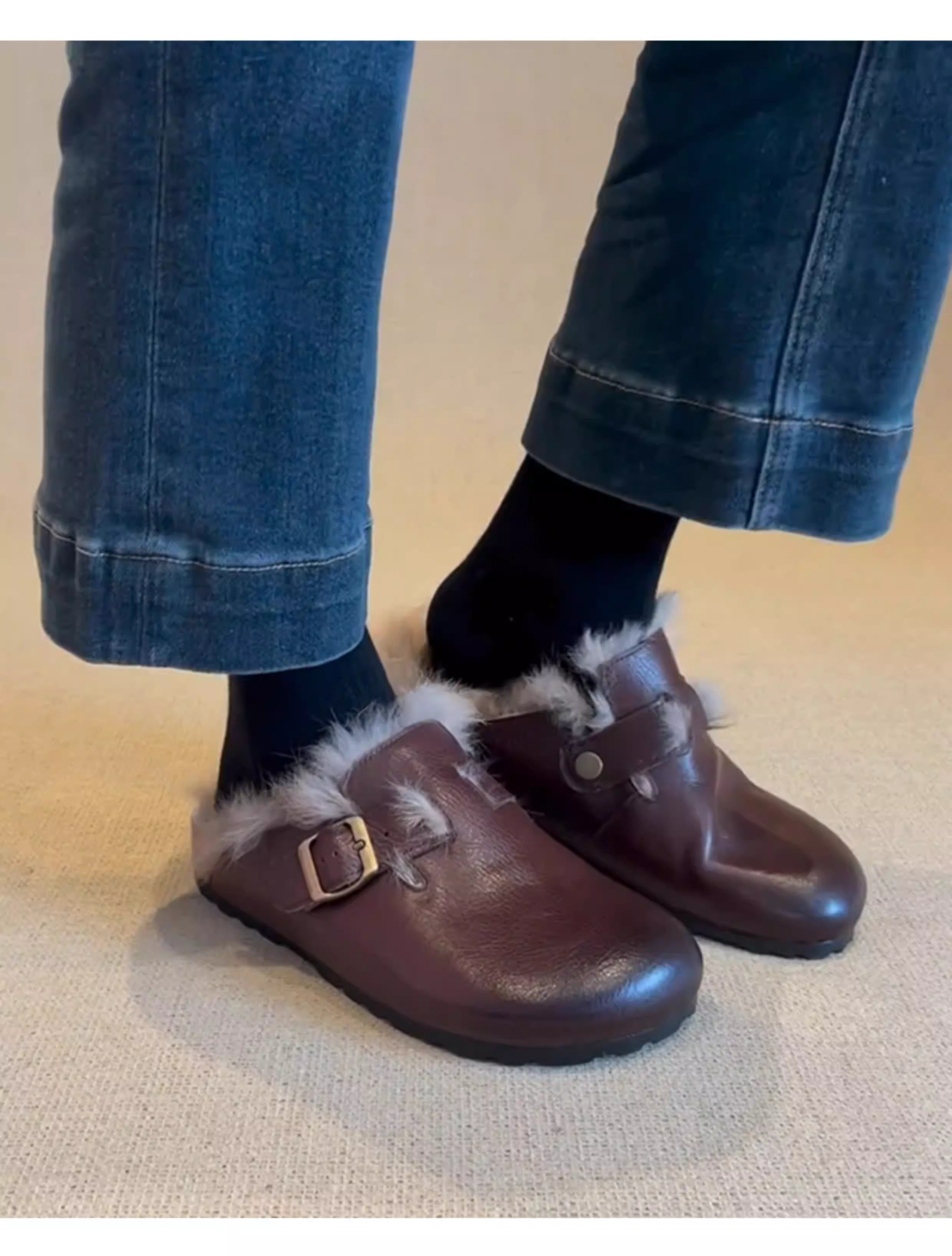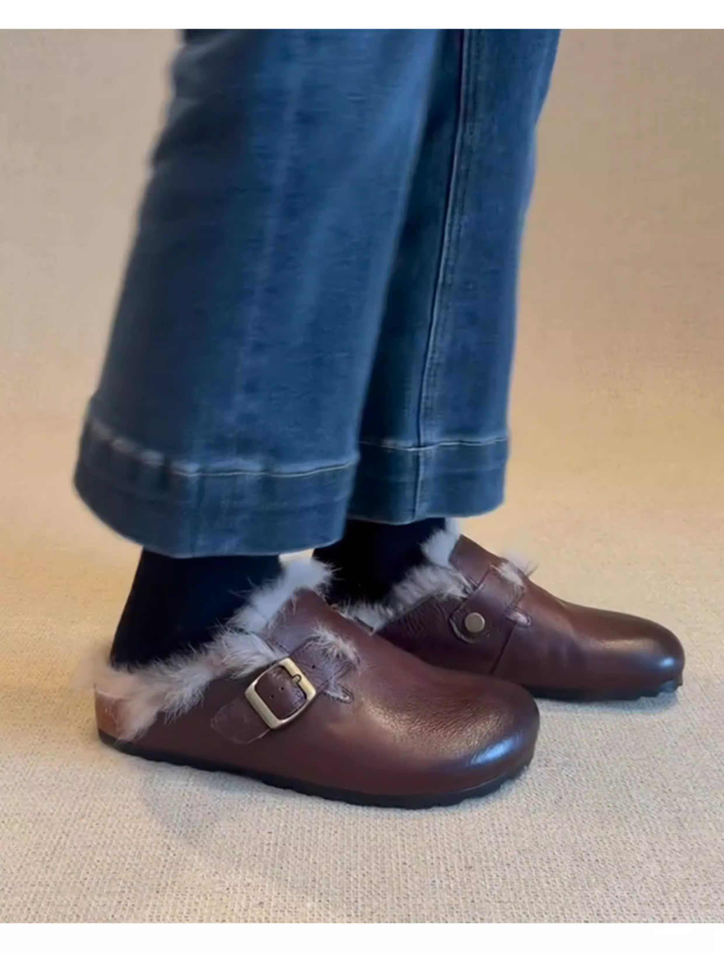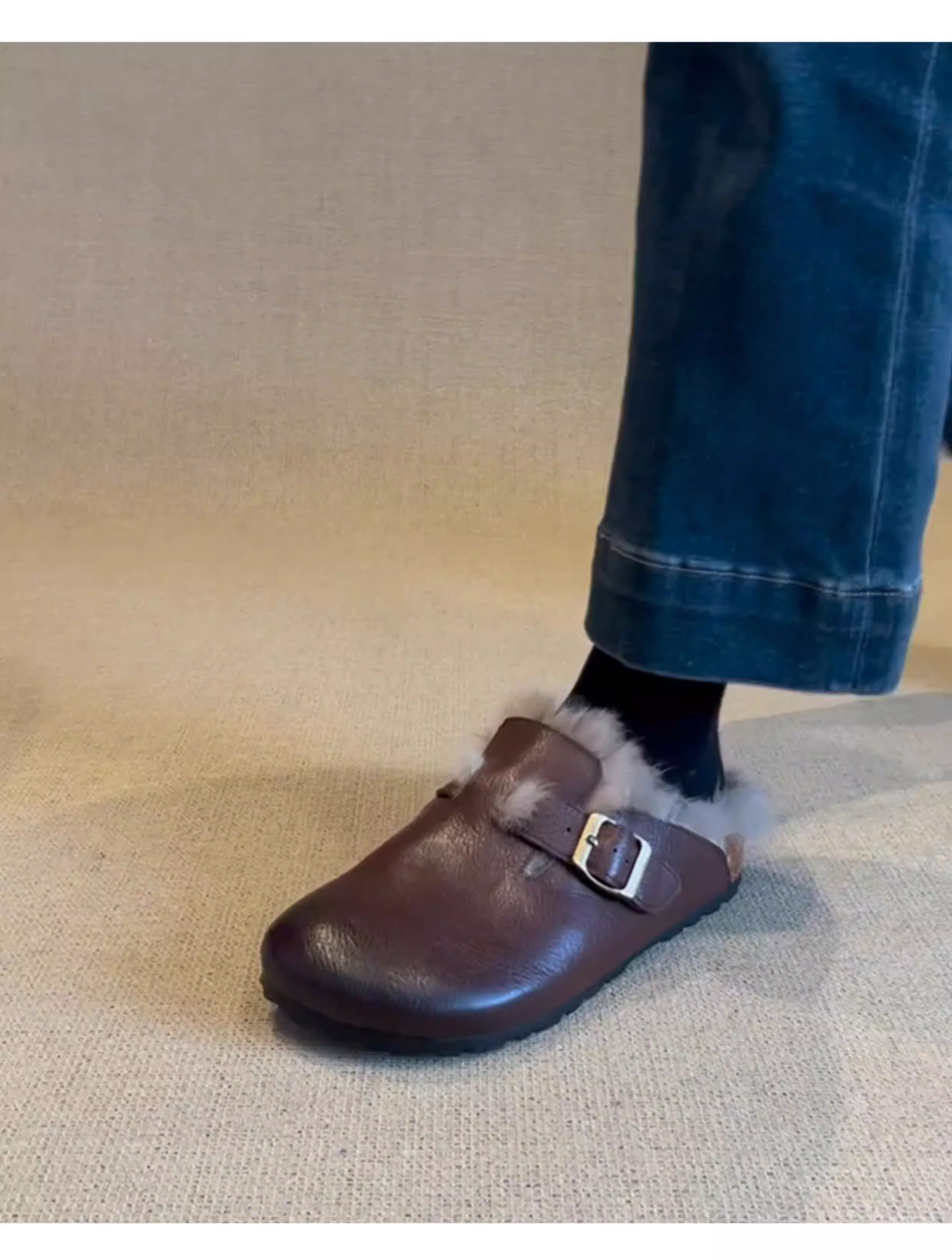 - Phiên bản da cừu ~ Giày Birkenstock da thật cổ điển, đã qua xử lý làm cũ, dành cho nữ, áo khoác ngoài bằng lông thỏ, giày lông mềm mại, dễ mang, mũi kín.