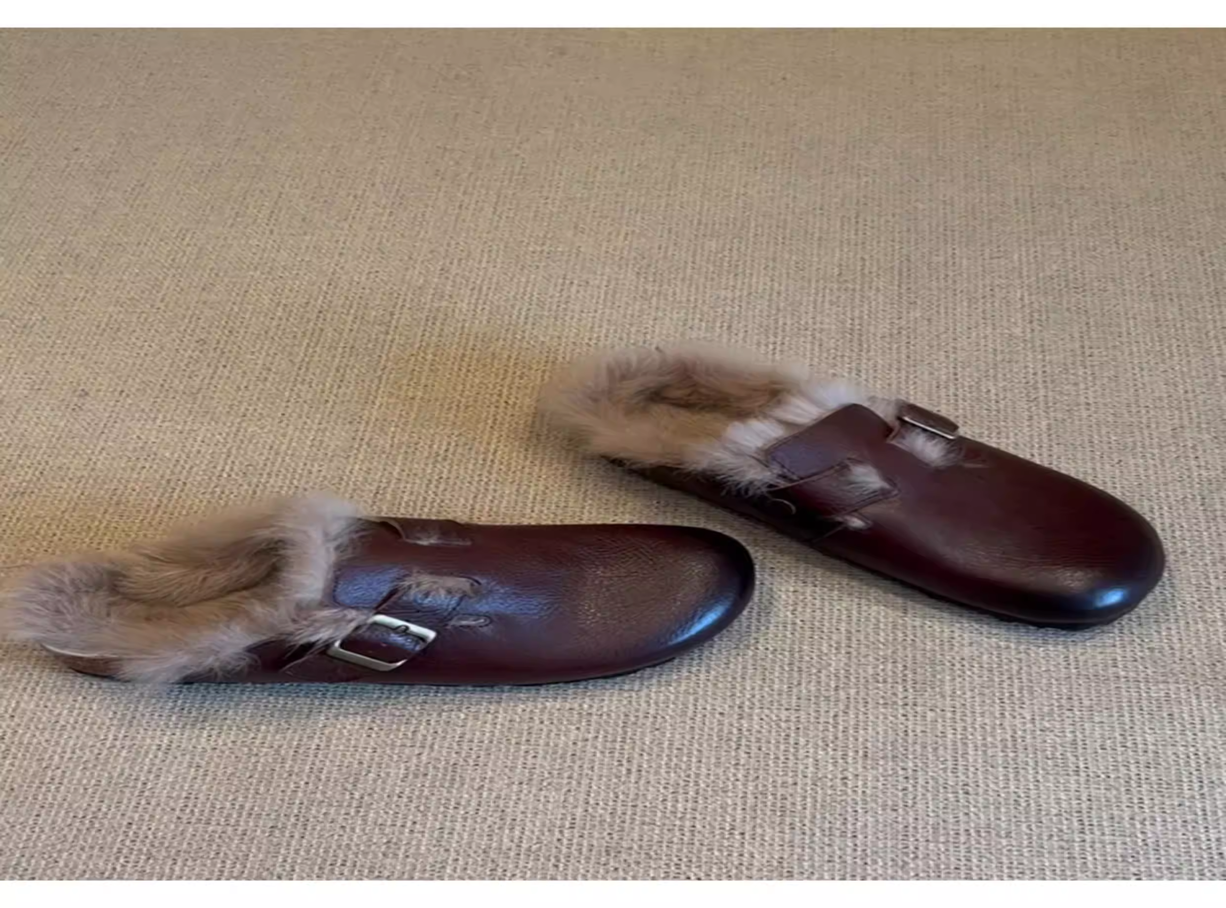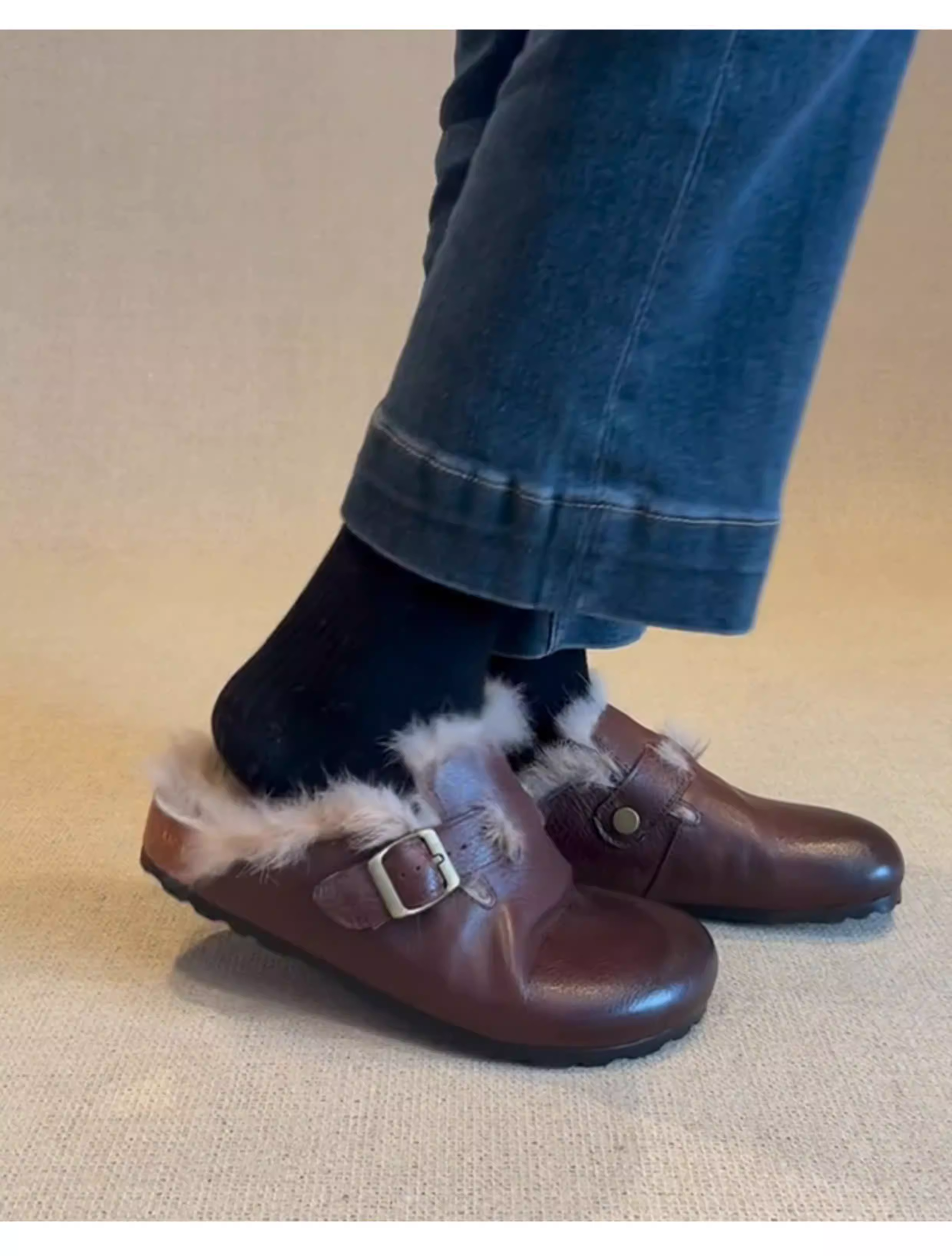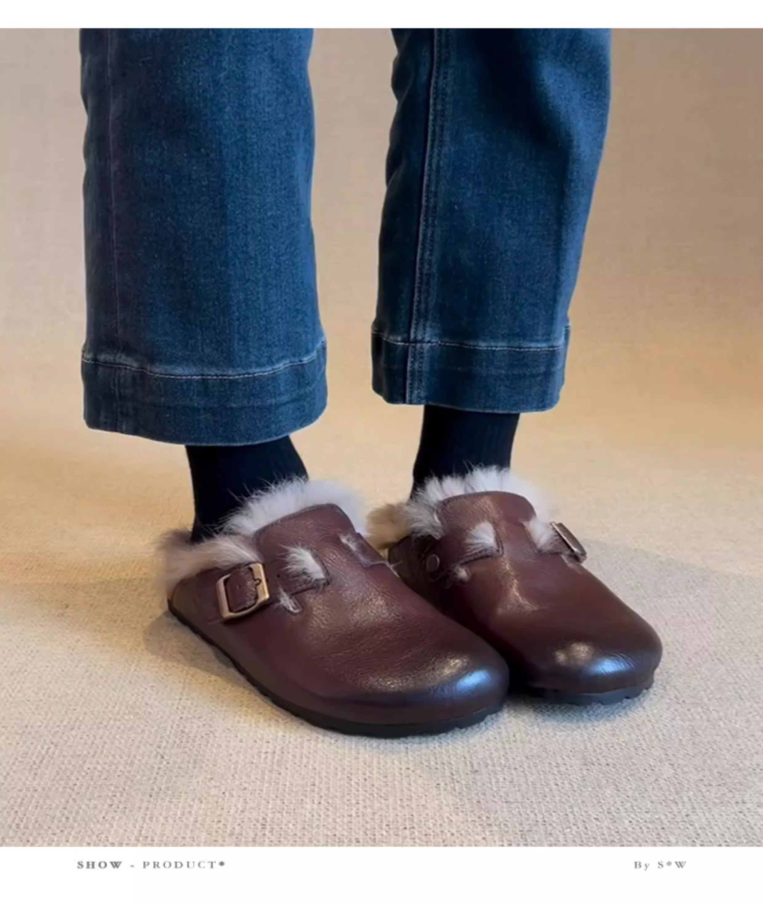 - Phiên bản da cừu ~ Giày Birkenstock da thật cổ điển, đã qua xử lý làm cũ, dành cho nữ, áo khoác ngoài bằng lông thỏ, giày lông mềm mại, dễ mang, mũi kín.
