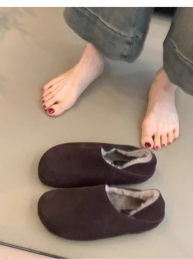 - Phiên bản da cừu ~ Giày Birkenstock dành cho nữ, kiểu dáng đơn giản, có thể mang hai chiều, kiểu lười, giày cotton phủ kín, lót lông cừu, ấm áp, thời trang, giày lông thú đa năng