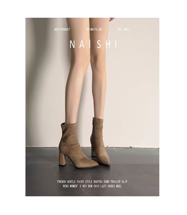 - Phiên bản da cừu! Giày bốt cao đến mắt cá chân mũi nhọn kiểu cổ điển, giày bốt mỏng bằng da lộn có dây kéo bên hông, giày bốt ngắn cao gót đa năng dành cho nữ.