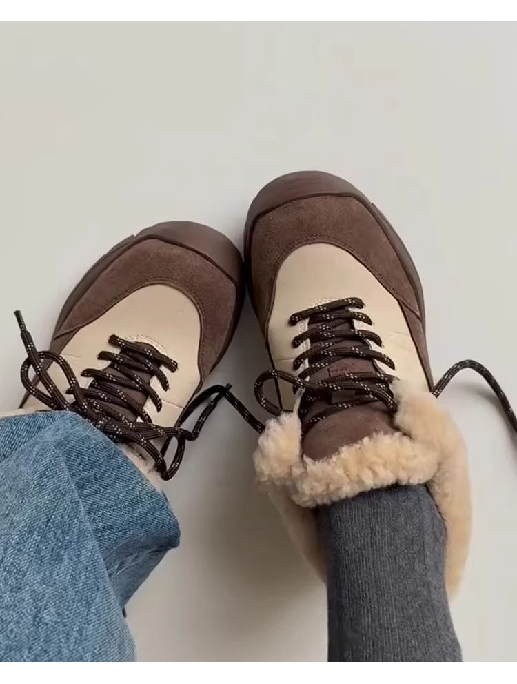 - Phiên bản da cừu ~ Giày bốt đi tuyết tích hợp len cừu dành cho nữ, giày cotton dày đế dày tăng chiều cao mùa đông, giày cotton ấm áp để mặc ngoài trời, giày tập luyện của Đức.