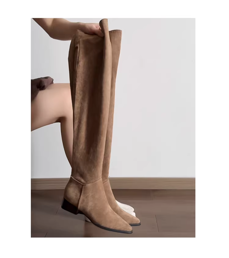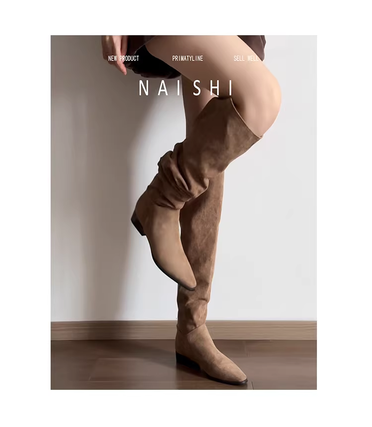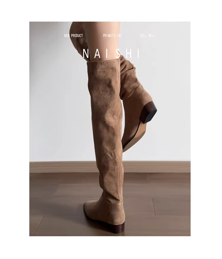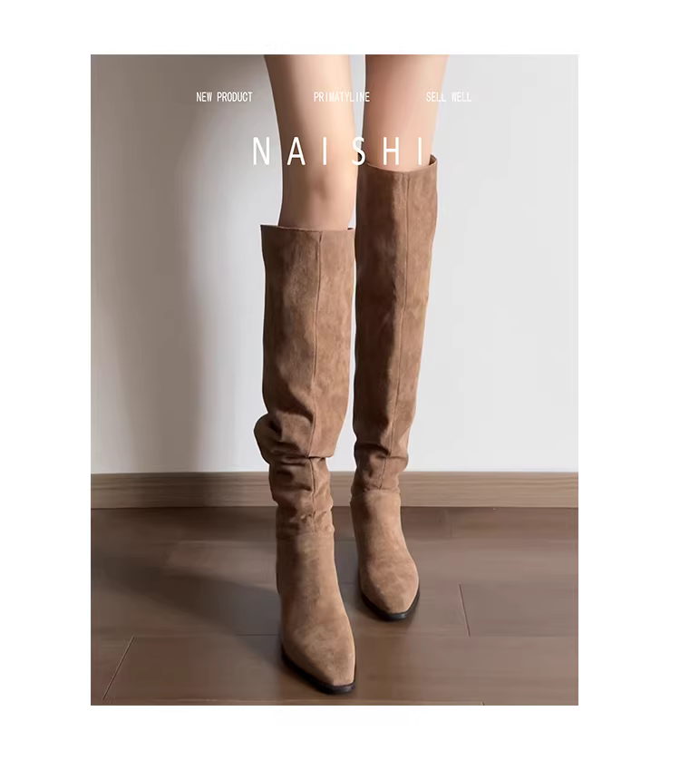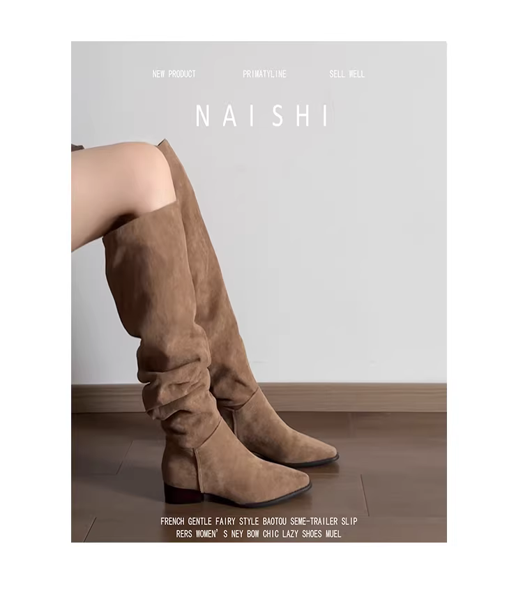 - Phiên bản da cừu! Giày bốt hiệp sĩ phương Tây xếp ly cổ điển dành cho nữ, kiểu dáng sa mạc, giày bốt cao cổ đế dày đa năng, mũi nhọn.