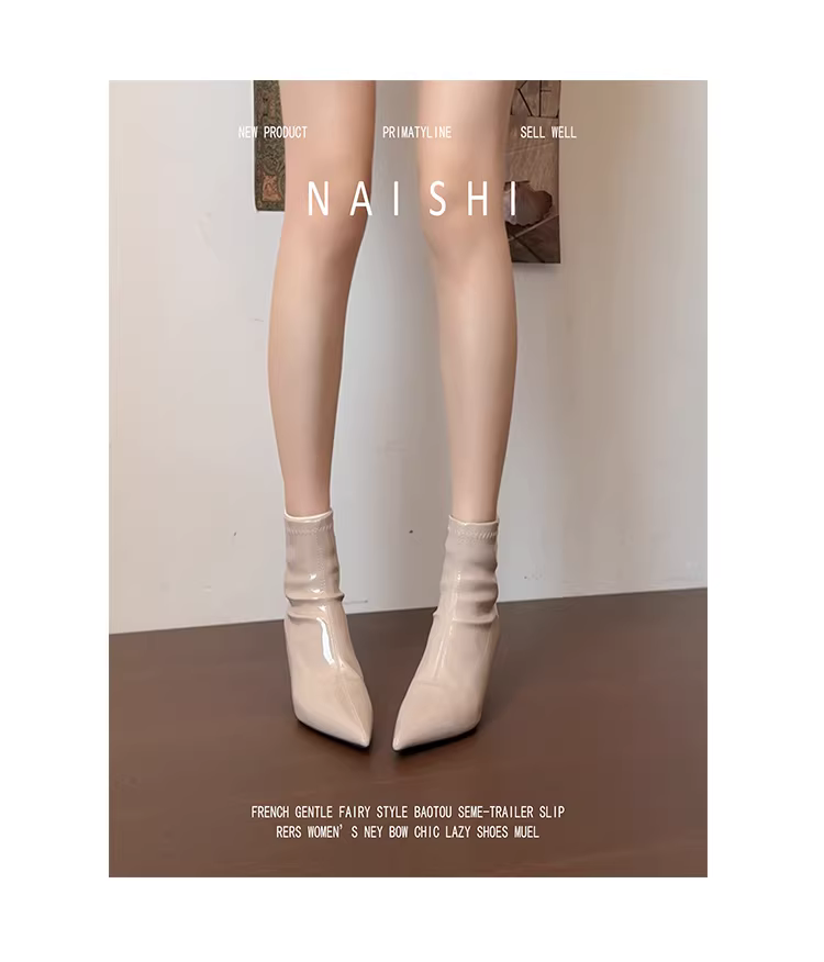 - Phiên bản da cừu! Giày bốt mũi nhọn màu nude kiểu Pháp dành cho nữ, giày cao gót da bóng thời trang có khóa kéo phía sau, giày bốt ngắn kiểu stiletto thanh lịch.