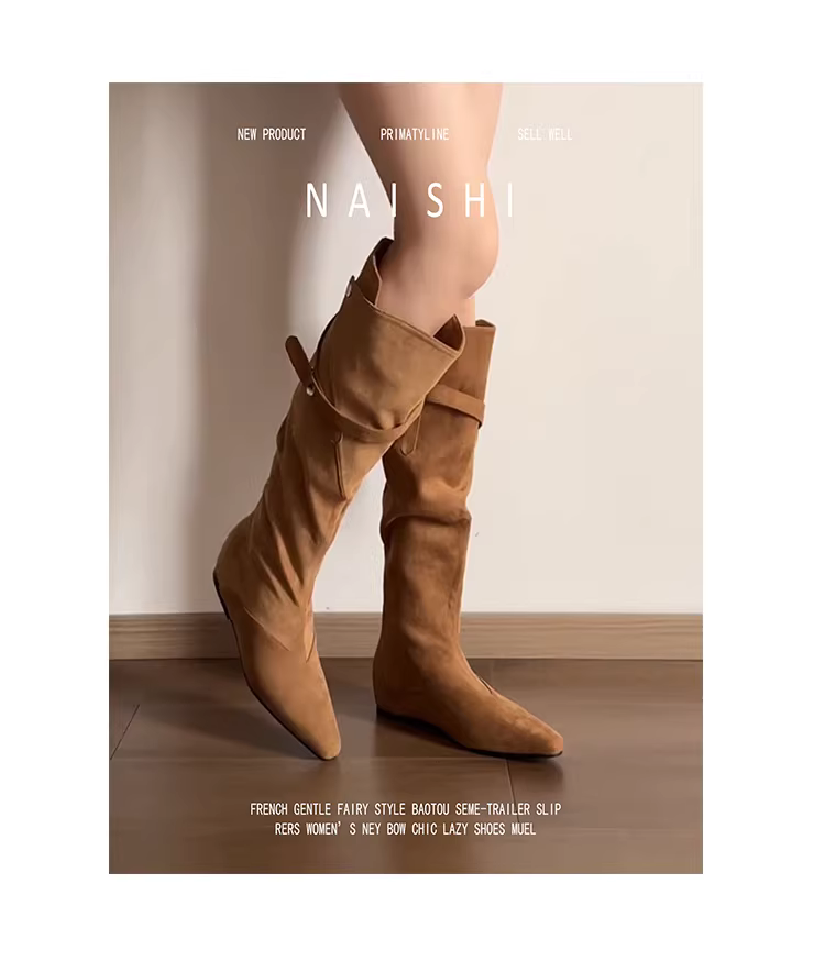 - Phiên bản da cừu! Giày cao bồi kiểu Maillard với thiết kế thời trang, giày cao cổ tăng chiều cao, giày cưỡi ngựa da lộn cổ điển dành cho nữ.