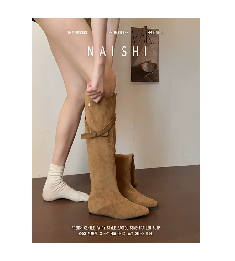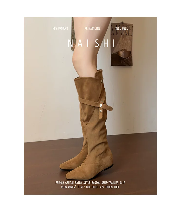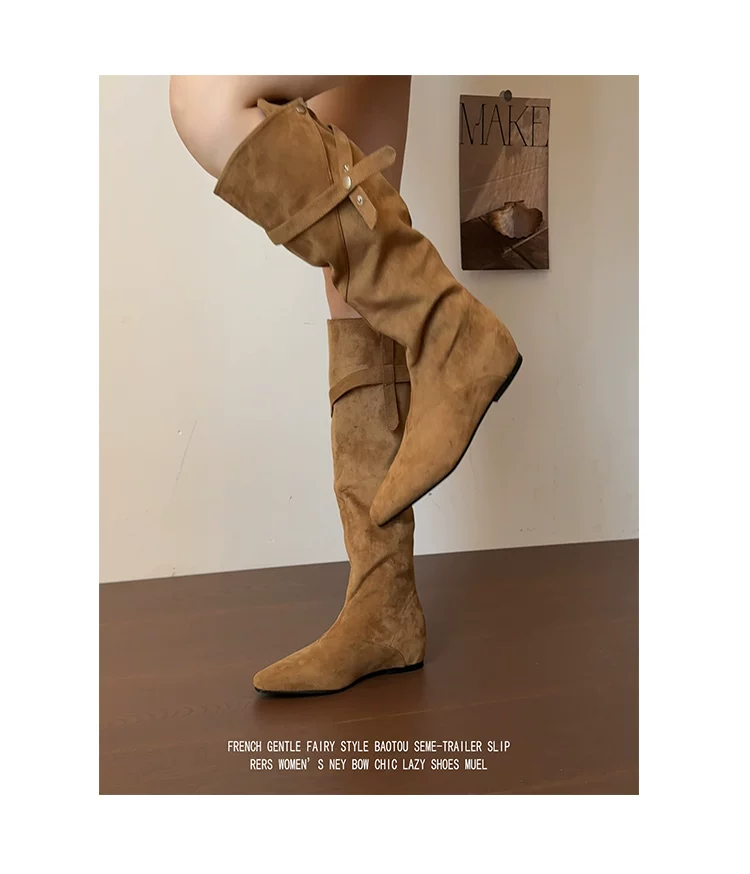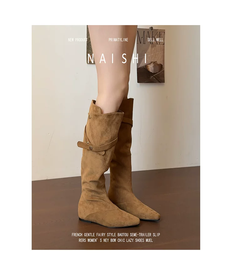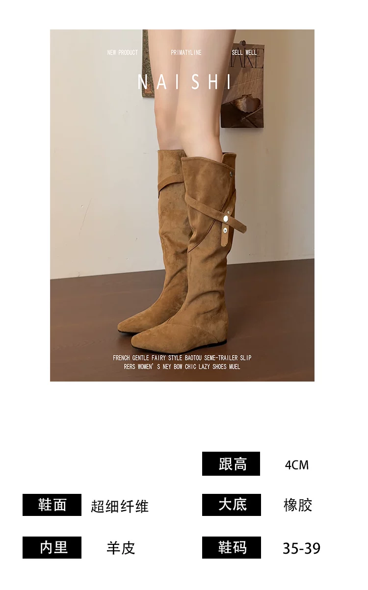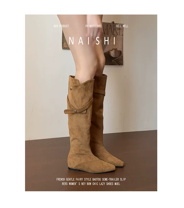 - Phiên bản da cừu! Giày cao bồi kiểu Maillard với thiết kế thời trang, giày cao cổ tăng chiều cao, giày da lộn cổ điển dành cho nữ.