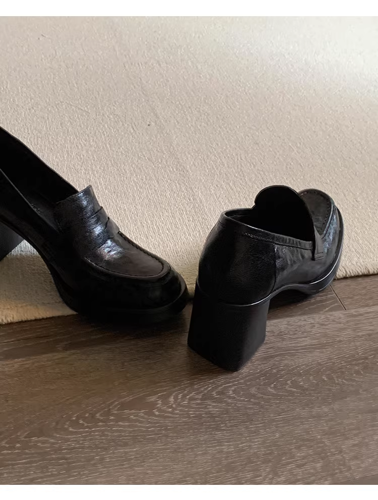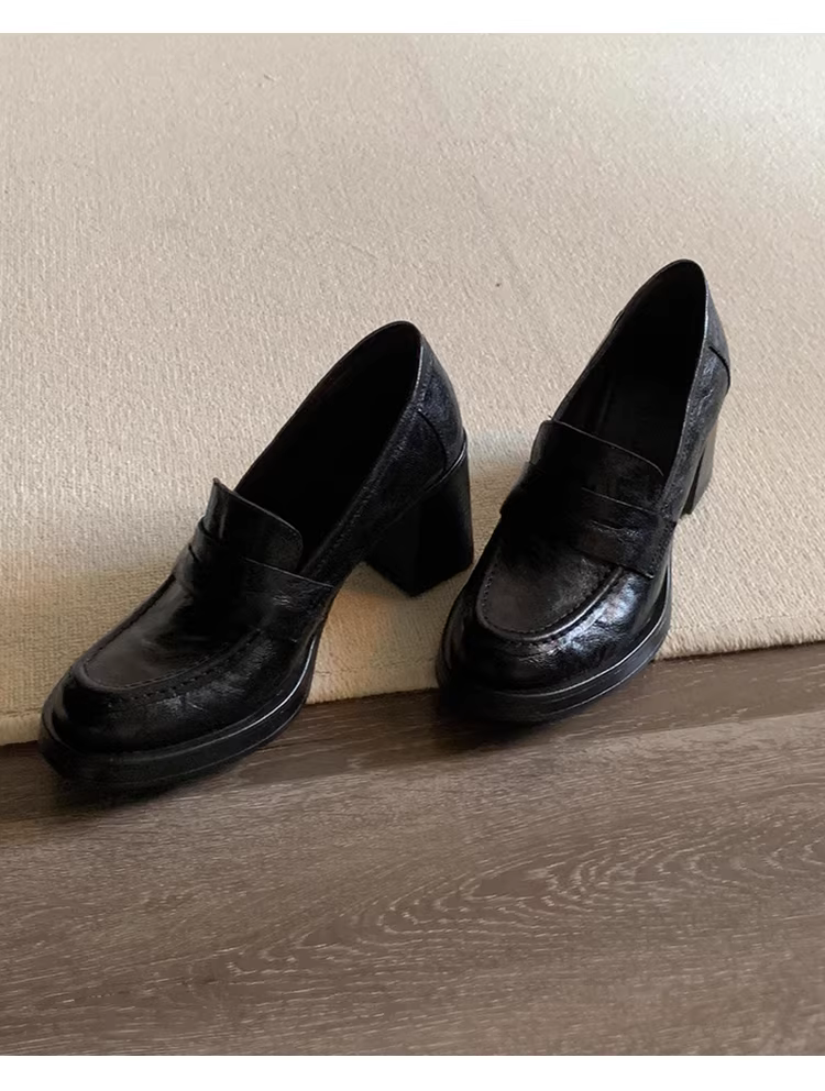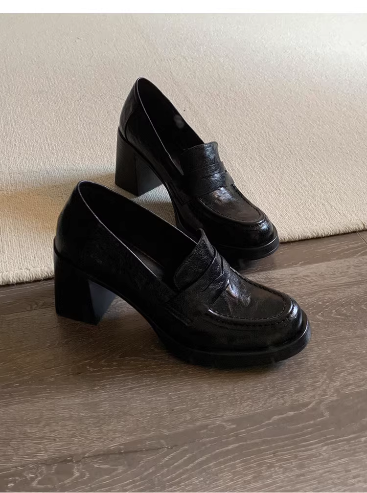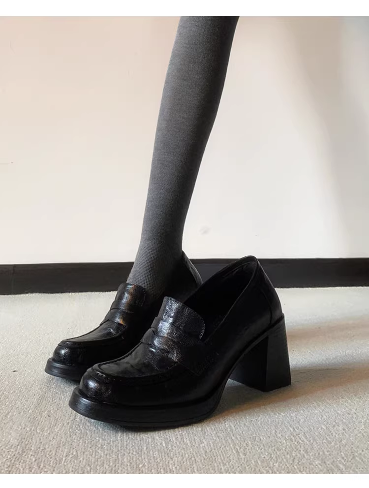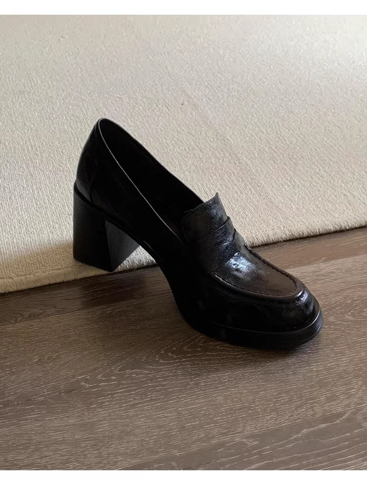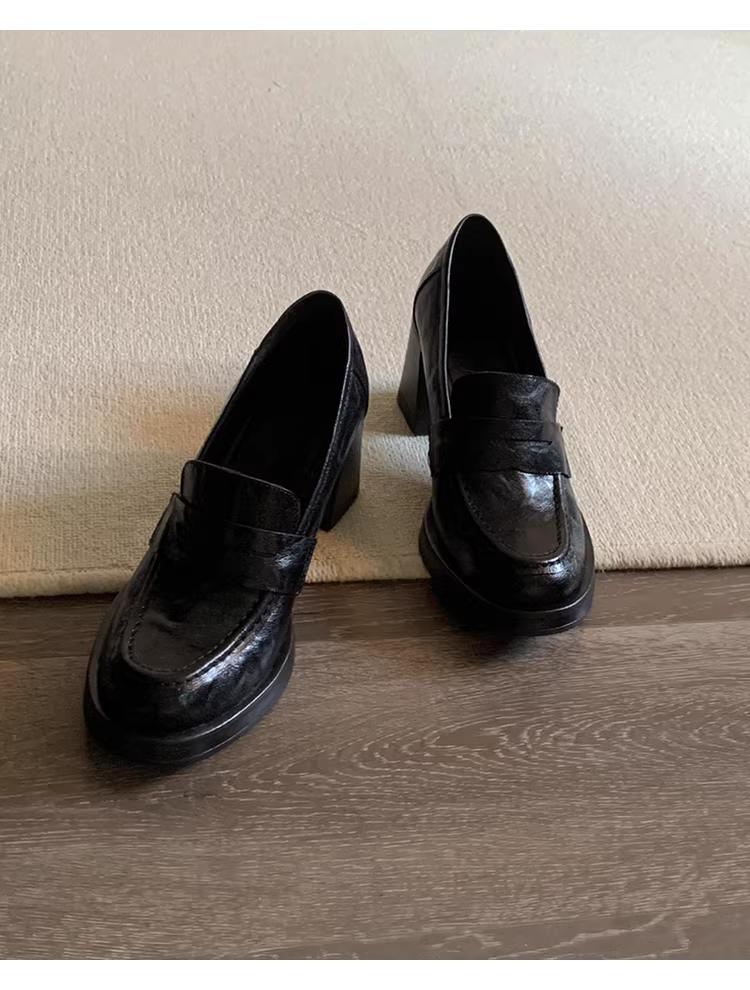 - Phiên bản da cừu ~ Giày cao gót cổ điển đi làm dành cho nữ, giày lười da thật màu đen, giày da nhỏ kiểu Anh đơn giản