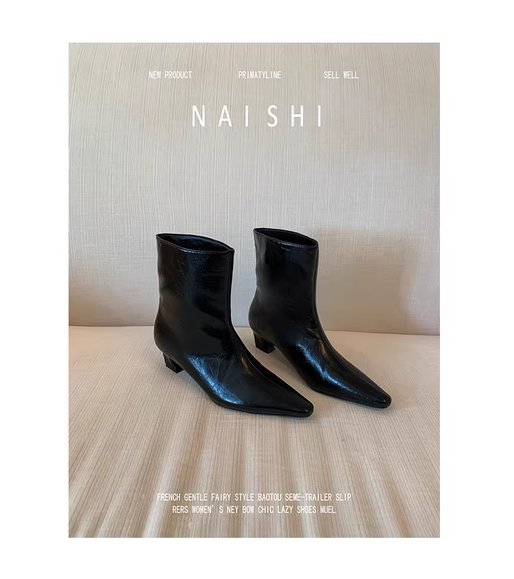 - Phiên bản da cừu! Giày Chelsea mũi nhọn, giày bốt dáng rộng cổ điển, giày bốt Martin ngắn đế trung bằng da thật đa năng và sành điệu.