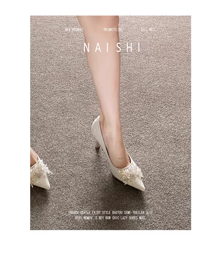 - Phiên bản da cừu! Giày cưới Xiuhe đính đá phong cách Pháp, giày cưới chính dành cho cô dâu, giày cao gót mũi nhọn, giày cao gót dự tiệc miệng nông.