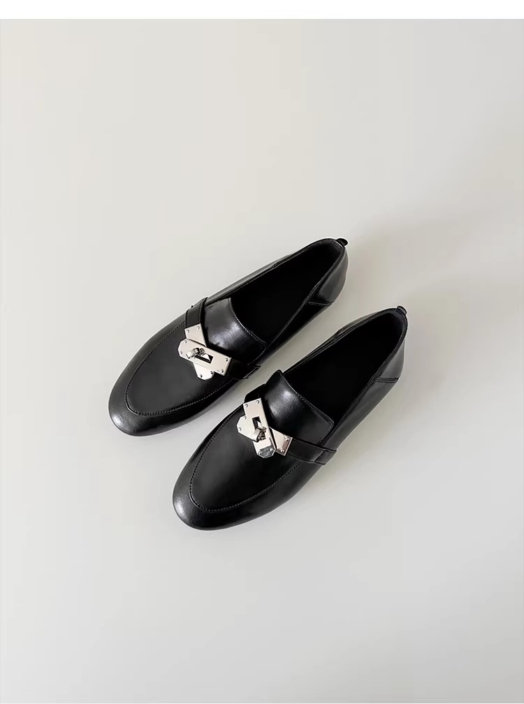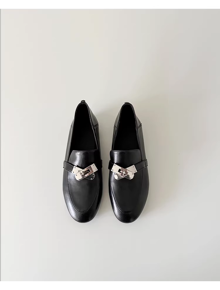 Phiên bản da cừu ~ Giày da có khóa kim loại kiểu Anh dành cho nữ, giày đi làm đa năng, giày lười cổ điển thanh lịch