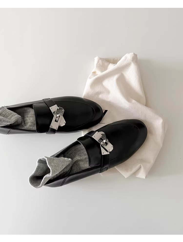 - Phiên bản da cừu ~ Giày da có khóa kim loại kiểu Anh dành cho nữ, giày đi làm đa năng, giày lười cổ điển thanh lịch
