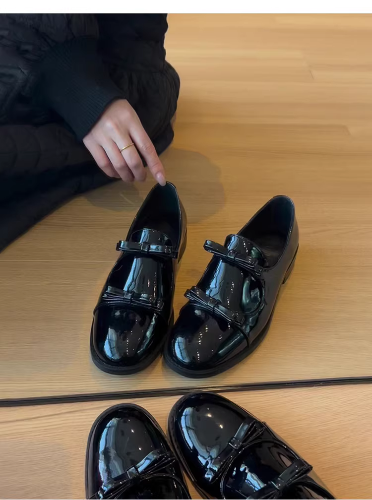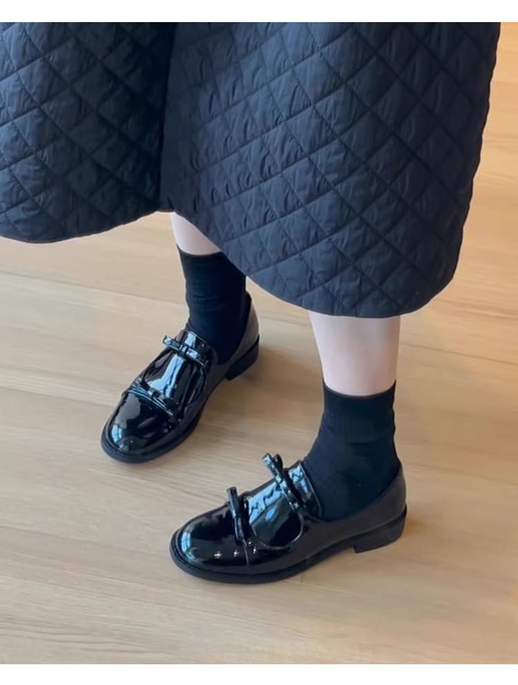 - Phiên bản da cừu ~ Giày da đế bằng kiểu Pháp dành cho nữ, màu đen bóng, giày lười cao cấp, giày lười thông thường.