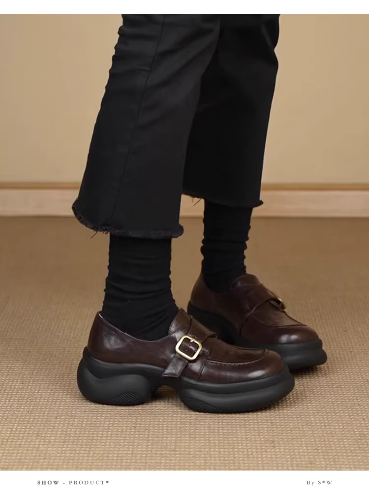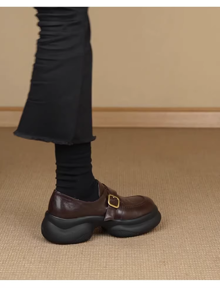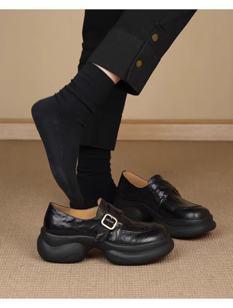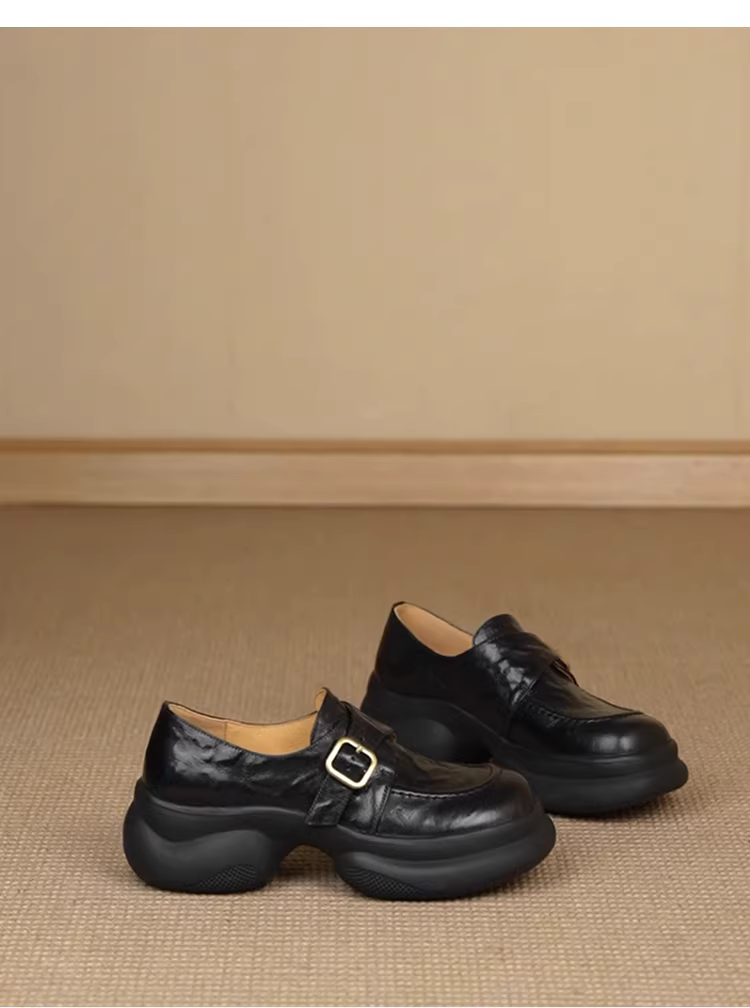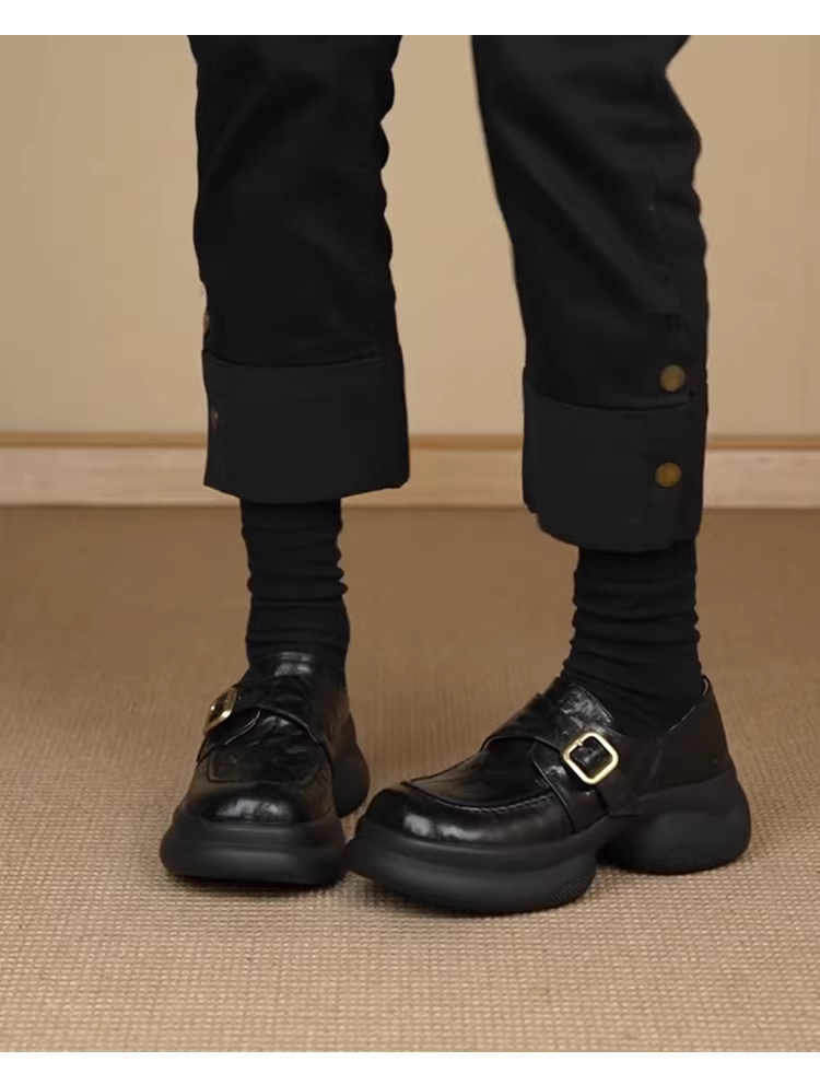 - Phiên bản da cừu ~ Giày da đen đế dày kiểu Anh có khóa đơn, giày bệt da thật cắt sâu, giày đế bệt đa năng.