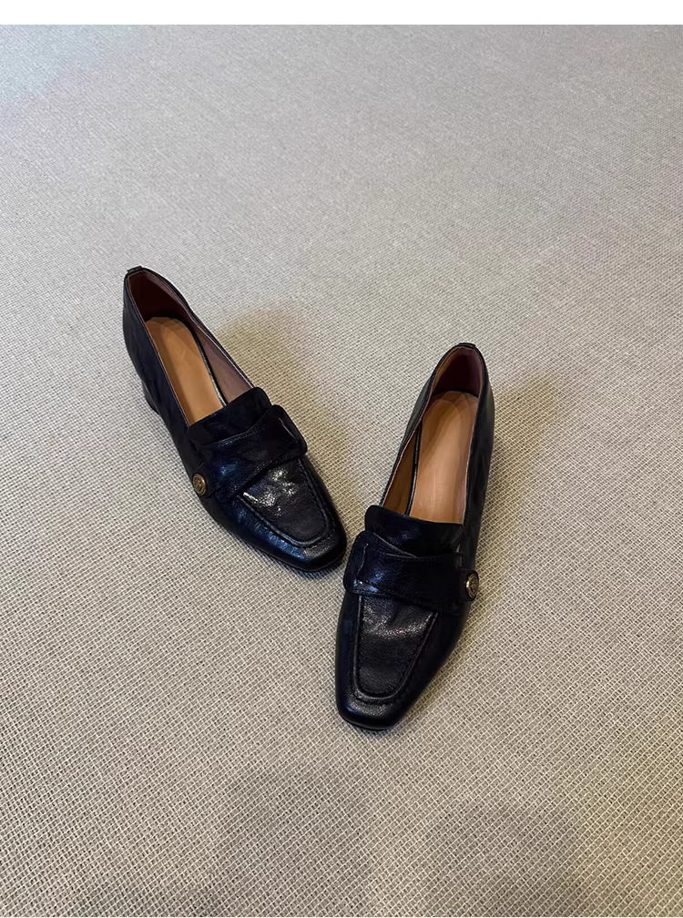 - Phiên bản da cừu ~ Giày da đi làm đa năng phong cách Pháp dành cho nữ, mũi vuông, gót dày, giày cao gót nông, giày lười thanh lịch.