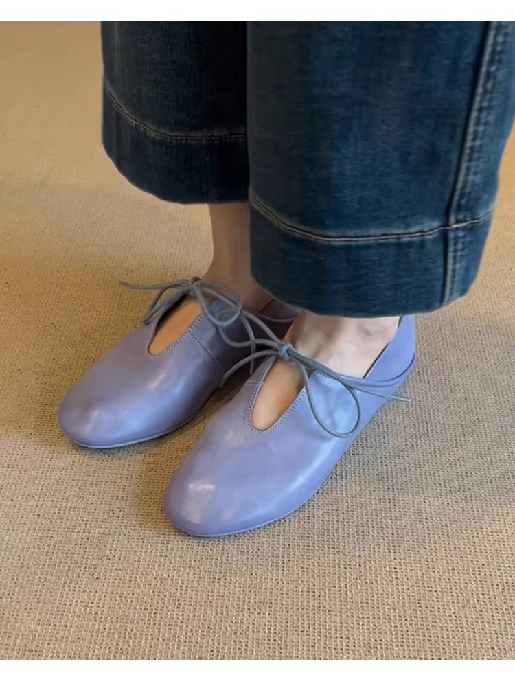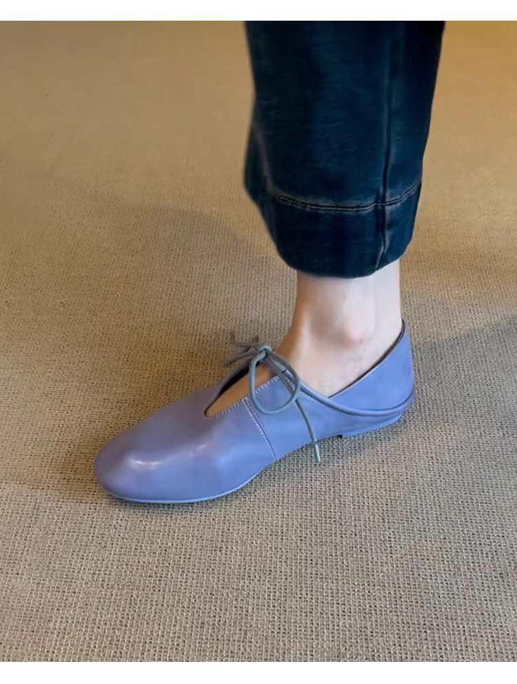 - Phiên bản da cừu ~ Giày da mềm kiểu cổ điển đế bằng, kiểu dáng hai chiều, giày da nhỏ dành cho nữ, kiểu dáng mới đầu xuân, giày đơn mũi tròn có dây buộc, kiểu dáng mới đầu xuân
