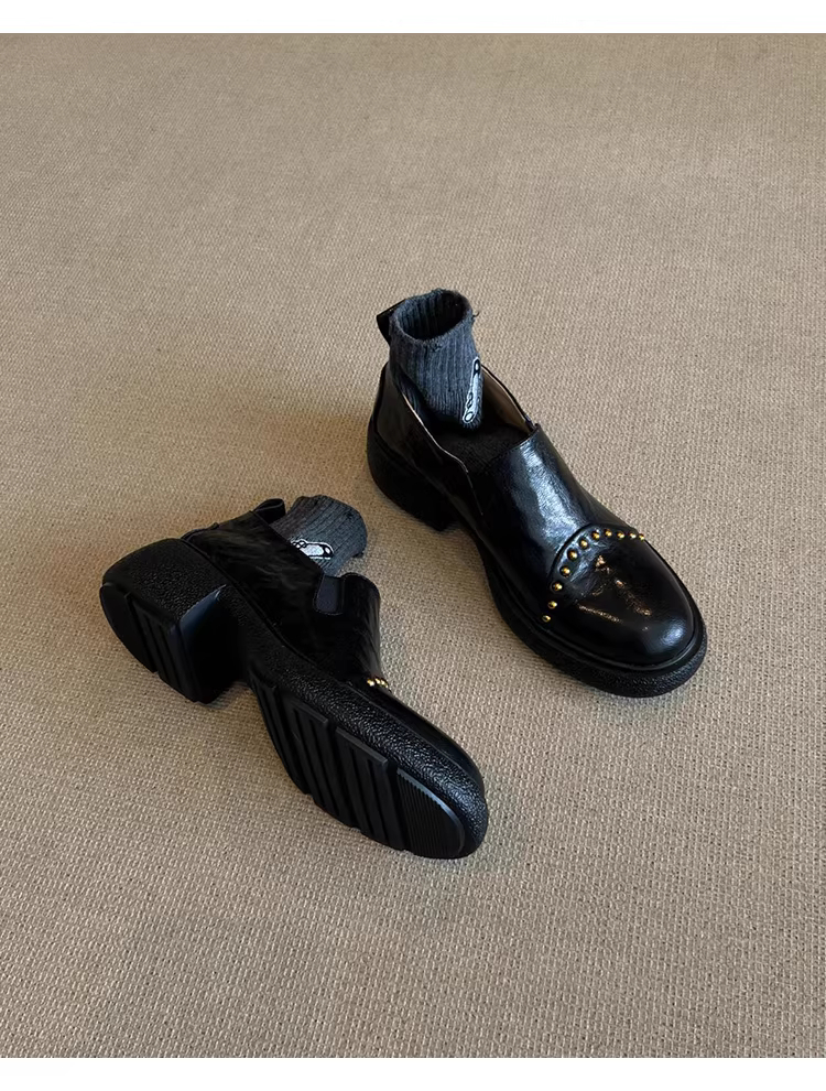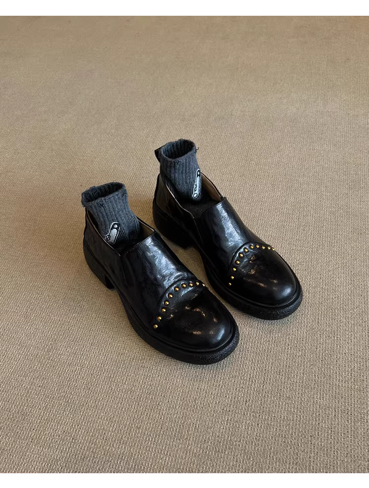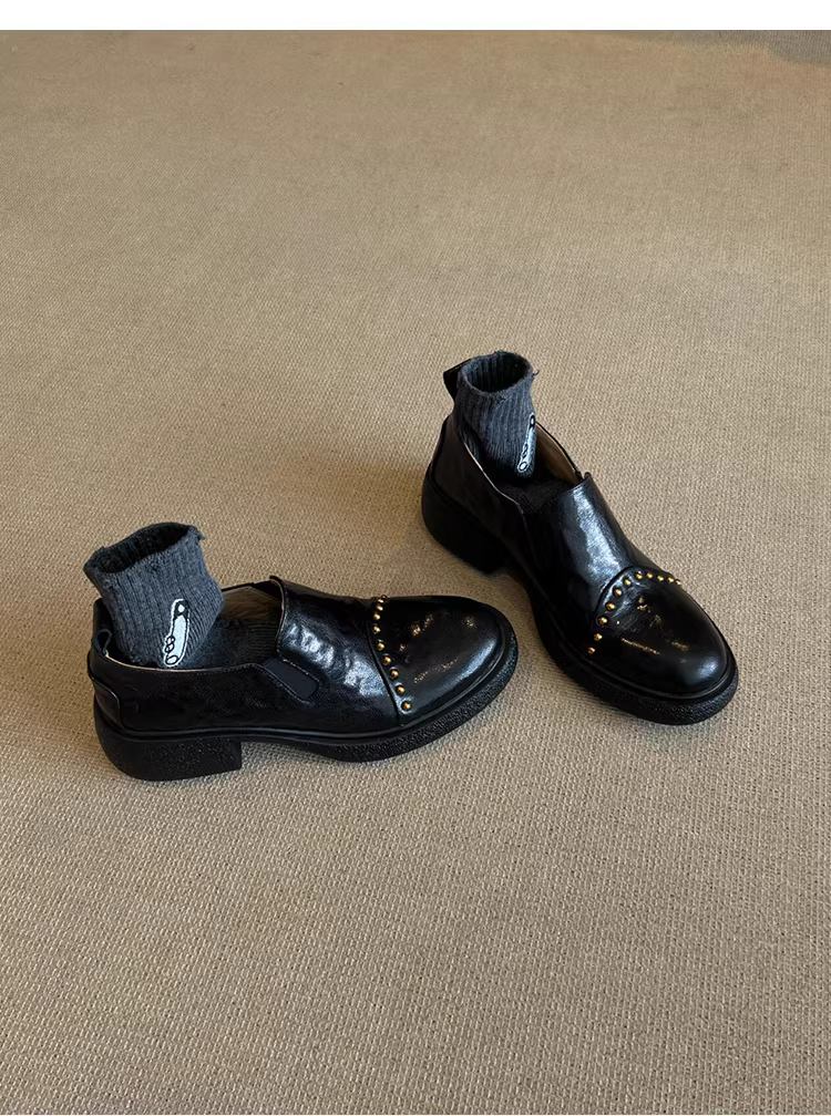 - Phiên bản da cừu ~ Giày da nhỏ kiểu Anh dành cho nữ, giày lười đế dày bằng da thật có đế dày, kiểu dáng xỏ ngón, cổ sâu, có dây thun.