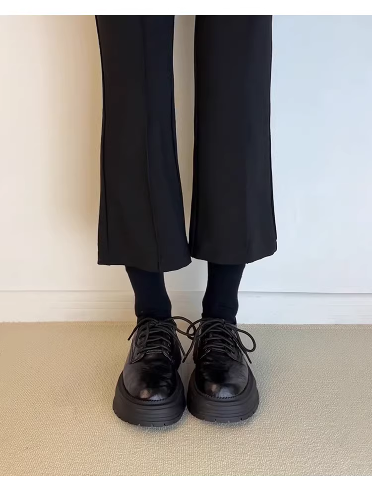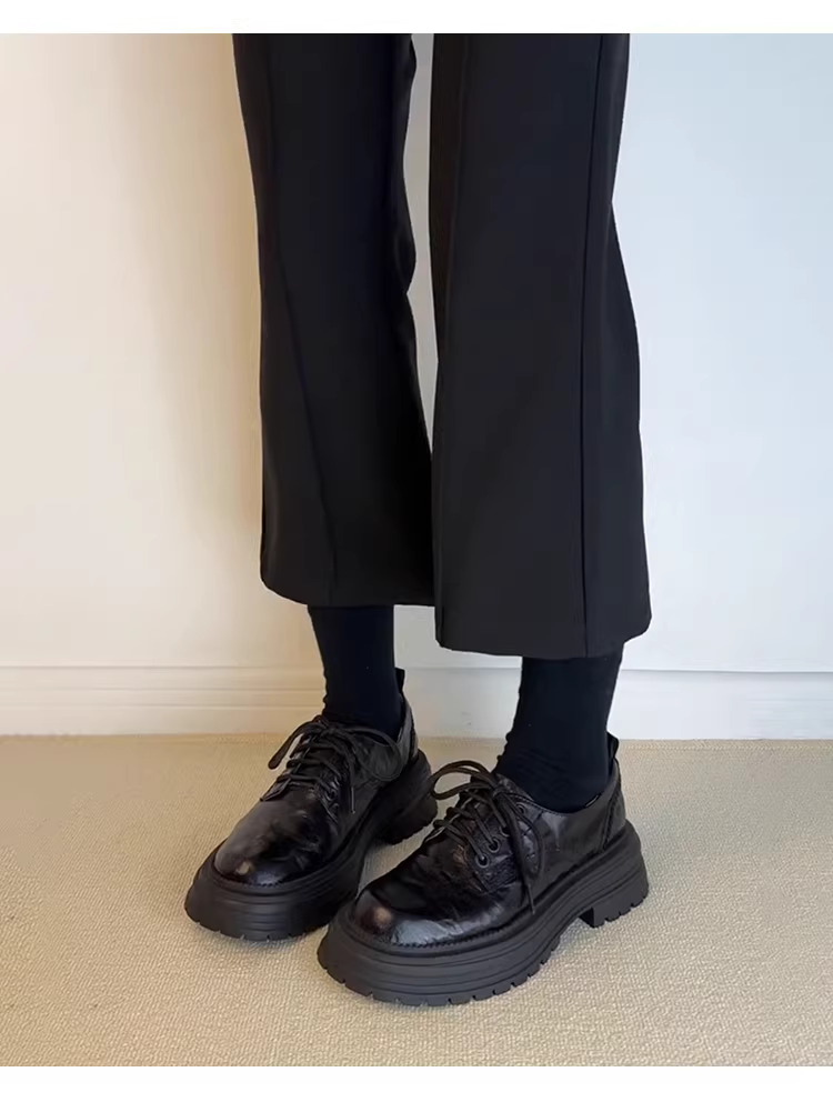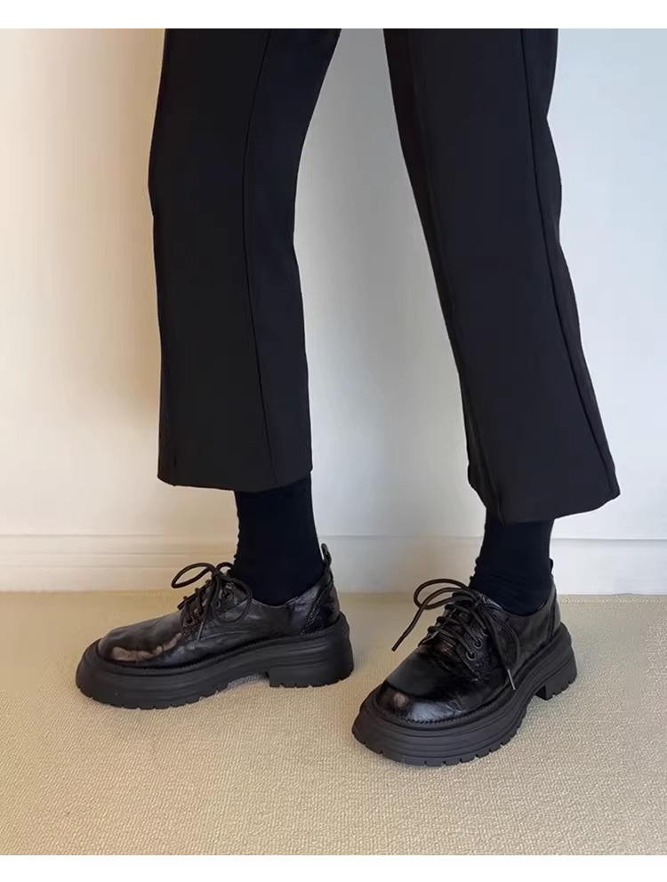 - Phiên bản da cừu ~ Giày da thật đế dày kiểu Anh có dây buộc dành cho nữ, giày đế tròn mũi tròn kiểu cổ điển đa năng phong cách đại học