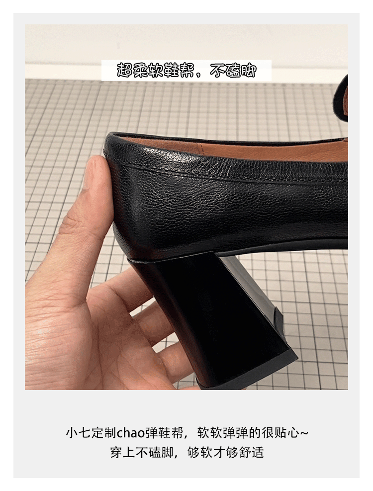 - Phiên bản da cừu ~ Giày da thật mũi vuông kiểu cổ điển nghệ thuật dành cho nữ, giày cao gót đi làm, giày lười đế dày