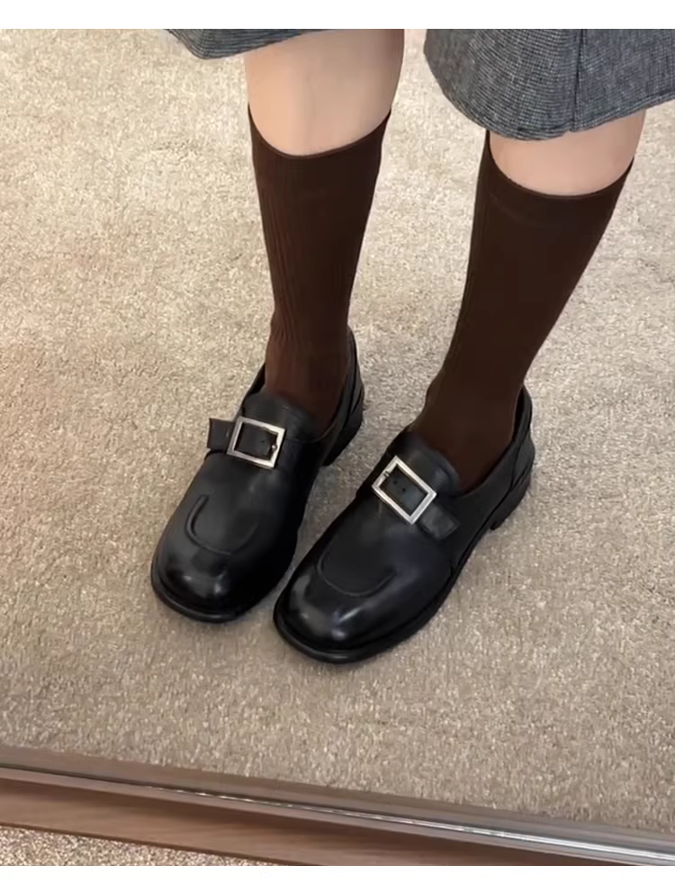 Phiên bản da cừu ~ Giày đế bằng da thật cổ điển dành cho nữ có khóa thắt lưng, giày da nhỏ kiểu Anh JK