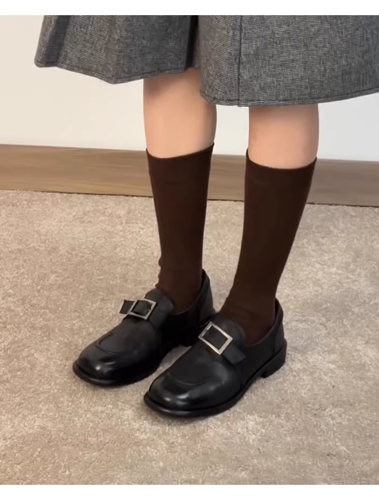 - Phiên bản da cừu ~ Giày đế bằng da thật cổ điển dành cho nữ có khóa thắt lưng, giày da nhỏ kiểu Anh JK
