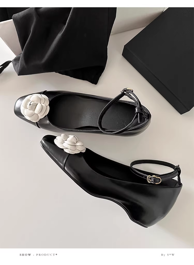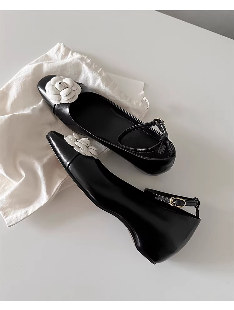 - Phiên bản da cừu ~ Giày đế bằng dây đeo hoa trà đa năng dành cho nữ, da thật, thiết kế độc đáo, tôn dáng, giày đi làm