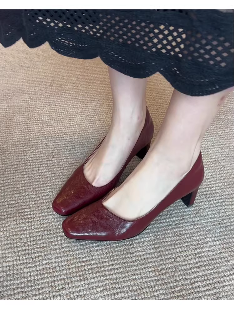 - Phiên bản da cừu ~ Giày đế bằng mũi vuông cổ điển dành cho nữ, giày lười da thật, giày cao gót thời trang, đơn giản, giản dị, chuyên nghiệp