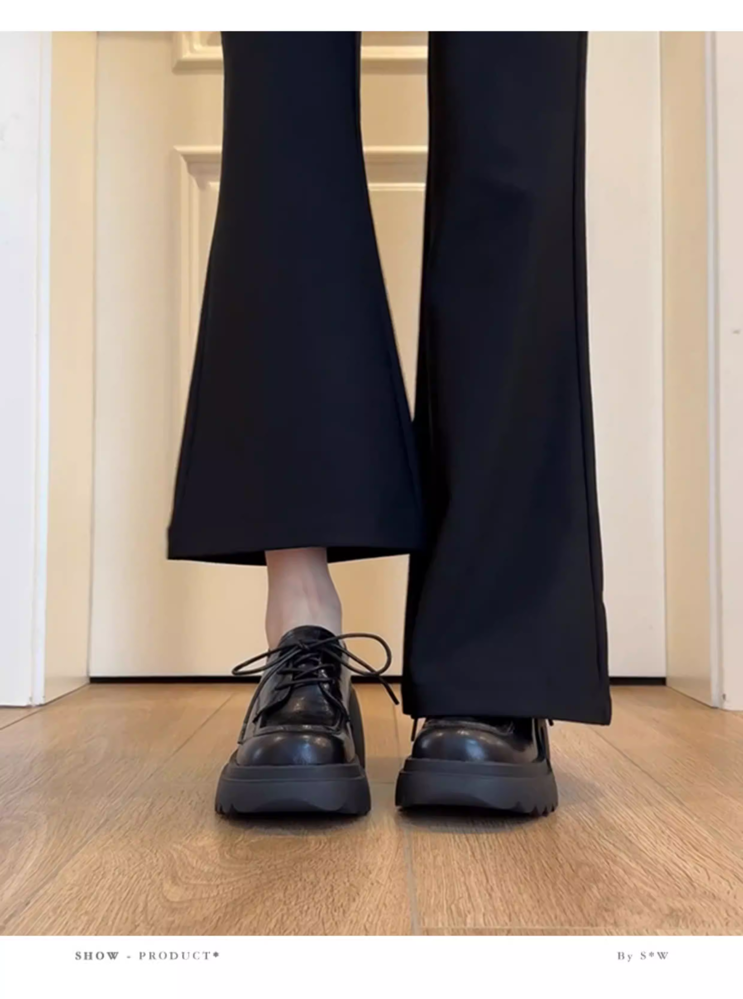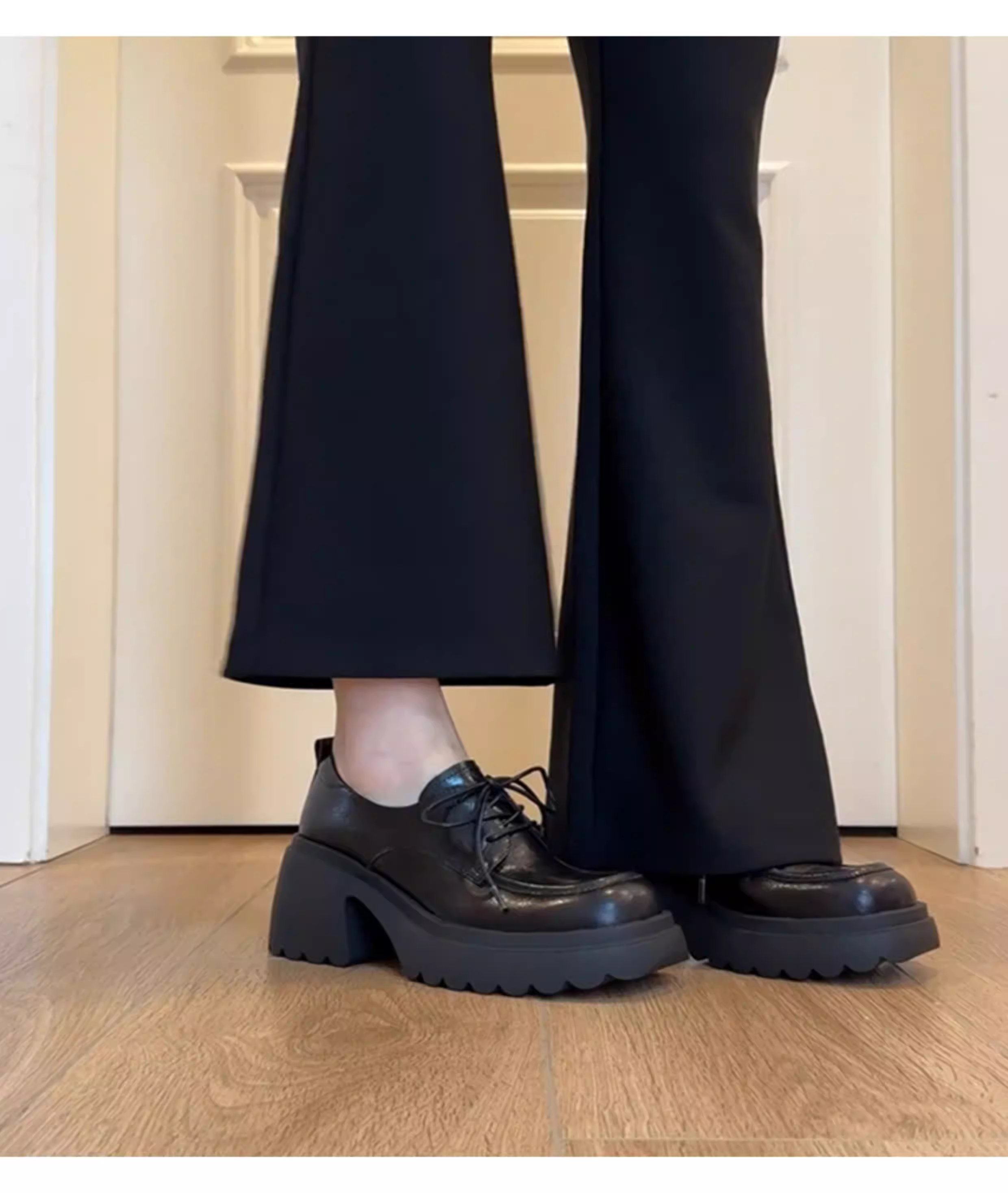 - Phiên bản da cừu ~ Giày đế dày đế dày chống thấm nước có dây buộc bằng da thật Giày da đen tăng chiều cao Giày đơn phong cách Anh Quốc