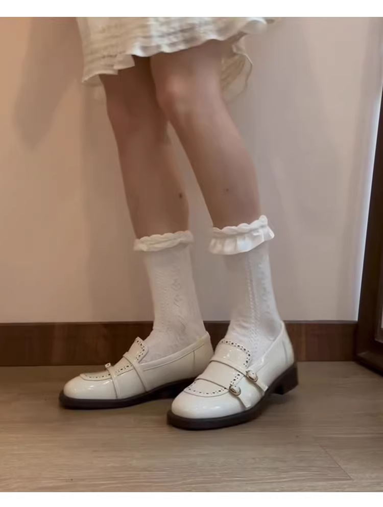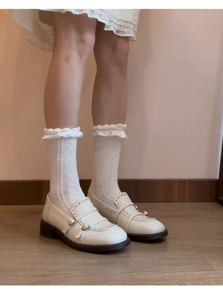 - Phiên bản da cừu ~ Giày đế thấp có khóa da chạm khắc dành cho nữ, giày da nhỏ mũi tròn phong cách Anh, giày lười da thật